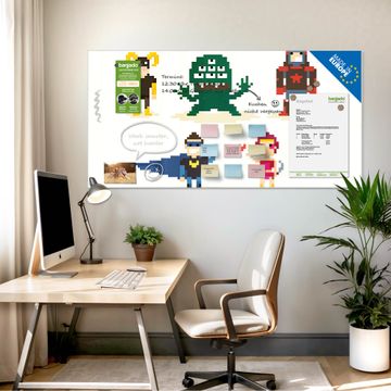 Material: 4mm Sicherheitsglas mit Metallrückwand Eigenschaften: beschreibbar, magnetisch, kratzfest Maße: 120x60x0,6cm, 10,80kg schwer Motiv Nummer 12629 Superhelden Zubehör: inklusive 4 Neodym-Magnete