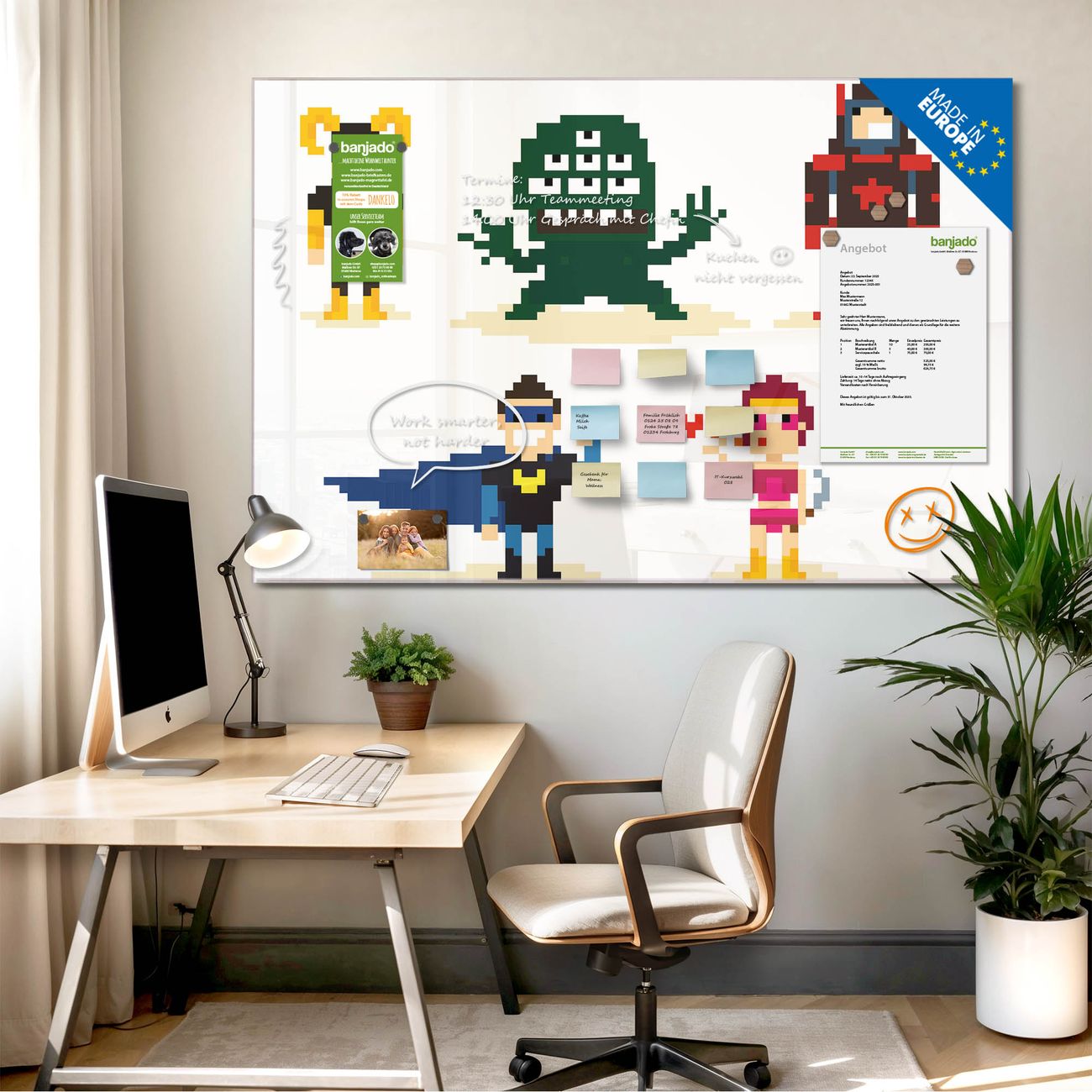 Die banjado Glas Magnettafel mit dem Motiv Motiv Superhelden verbindet Funktionalität mit Stil. Sie ersetzt das Zettelchaos durch klare Strukturen und bringt dabei eine warme, natürliche Atmosphäre in Ihr Zuhause. Ob im Büro, in der Küche oder im Eingangsbereich - dieses Design-Board zieht Blicke an und sorgt für Ordnung mit Charakter.