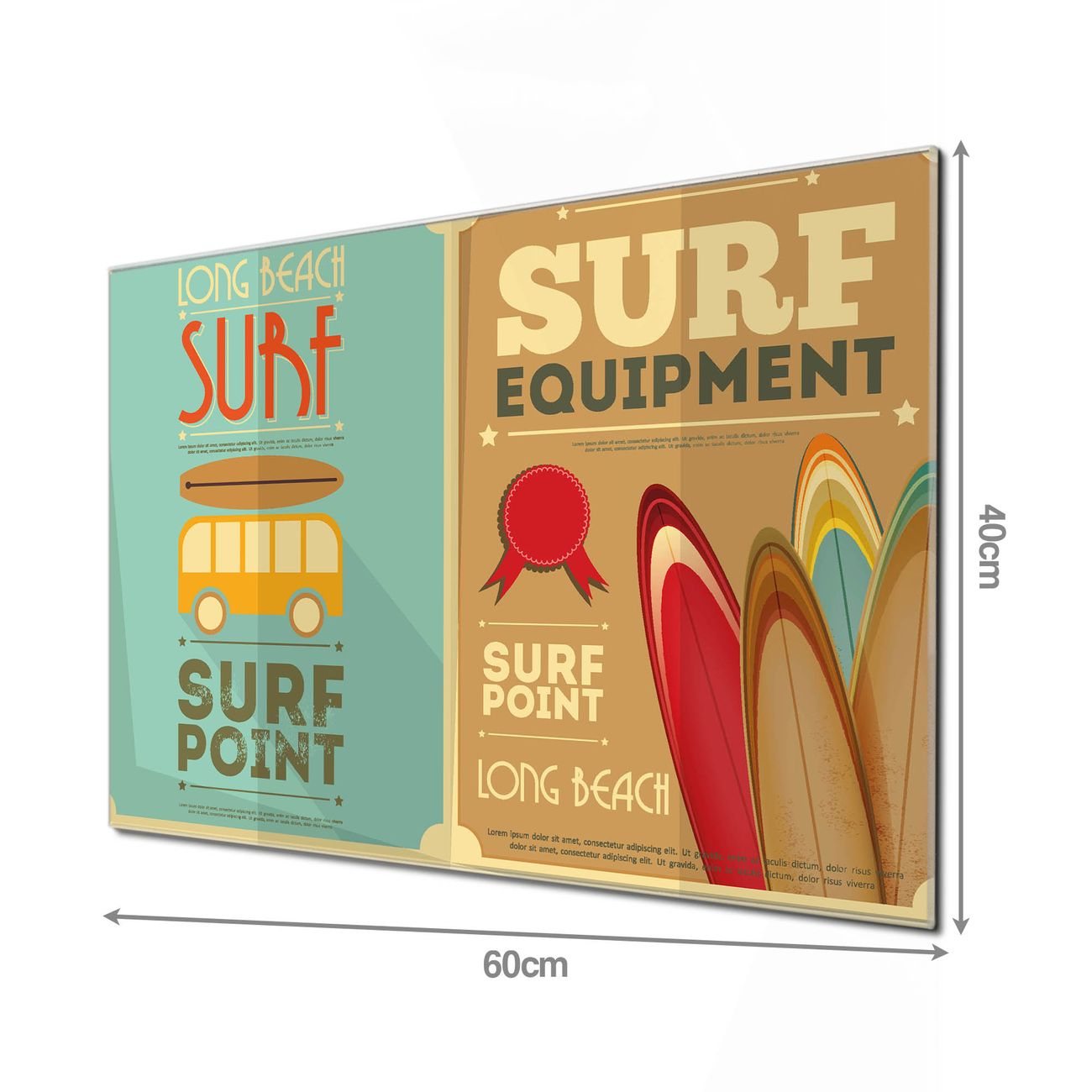 Material  4mm Sicherheitsglas mit Metallrückwand Eigenschaften  beschreibbar, magnetisch, kratzfest Maße  60x40x0,6cm, 3,6kg schwer Motiv  Nummer 10867 Surf Point Zubehör  inklusive 4 Neodym-Magnete