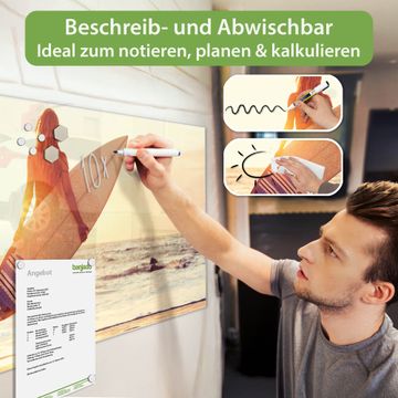 Die banjado Glas Magnettafel mit dem Motiv Motiv Surfer Girl verbindet Funktionalität mit Stil. Sie ersetzt das Zettelchaos durch klare Strukturen und bringt dabei eine warme, natürliche Atmosphäre in Ihr Zuhause. Ob im Büro, in der Küche oder im Eingangsbereich - dieses Design-Board zieht Blicke an und sorgt für Ordnung mit Charakter.