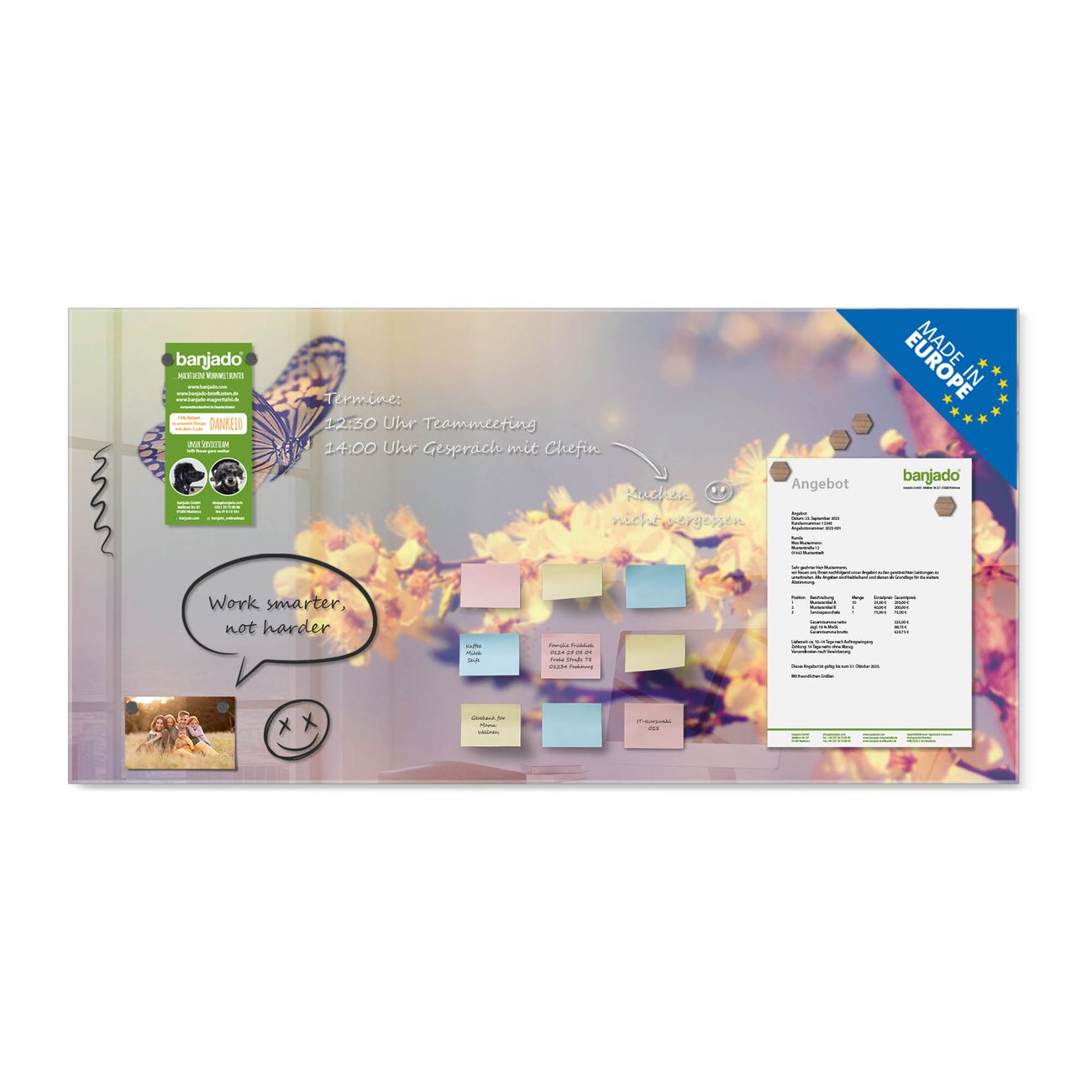 Die banjado Glas Magnettafel mit dem Motiv Motiv Tag Im Mai verbindet Funktionalität mit Stil. Sie ersetzt das Zettelchaos durch klare Strukturen und bringt dabei eine warme, natürliche Atmosphäre in Ihr Zuhause. Ob im Büro, in der Küche oder im Eingangsbereich - dieses Design-Board zieht Blicke an und sorgt für Ordnung mit Charakter.