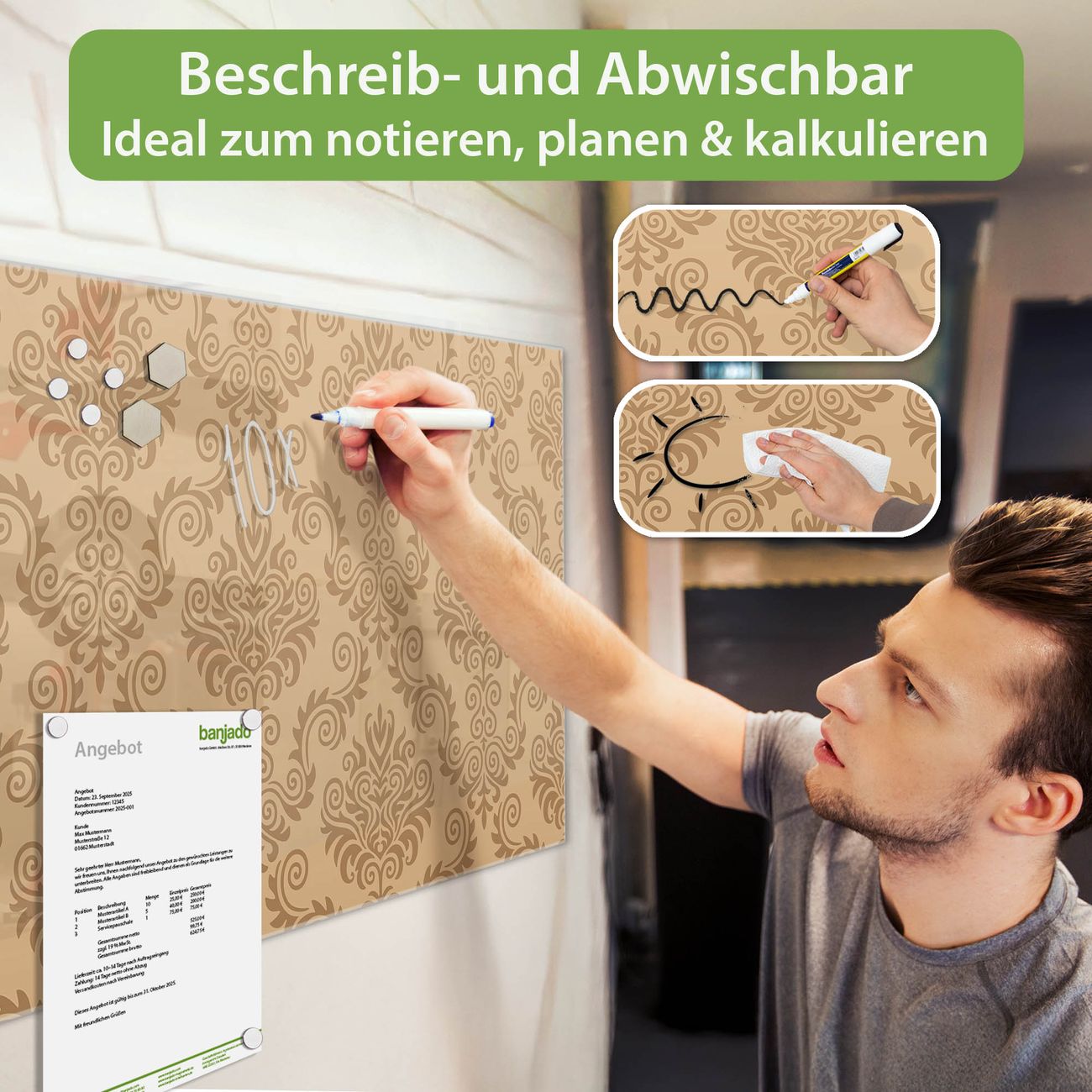 Glas Magnettafel im Querformat Motiv Tapete Beige