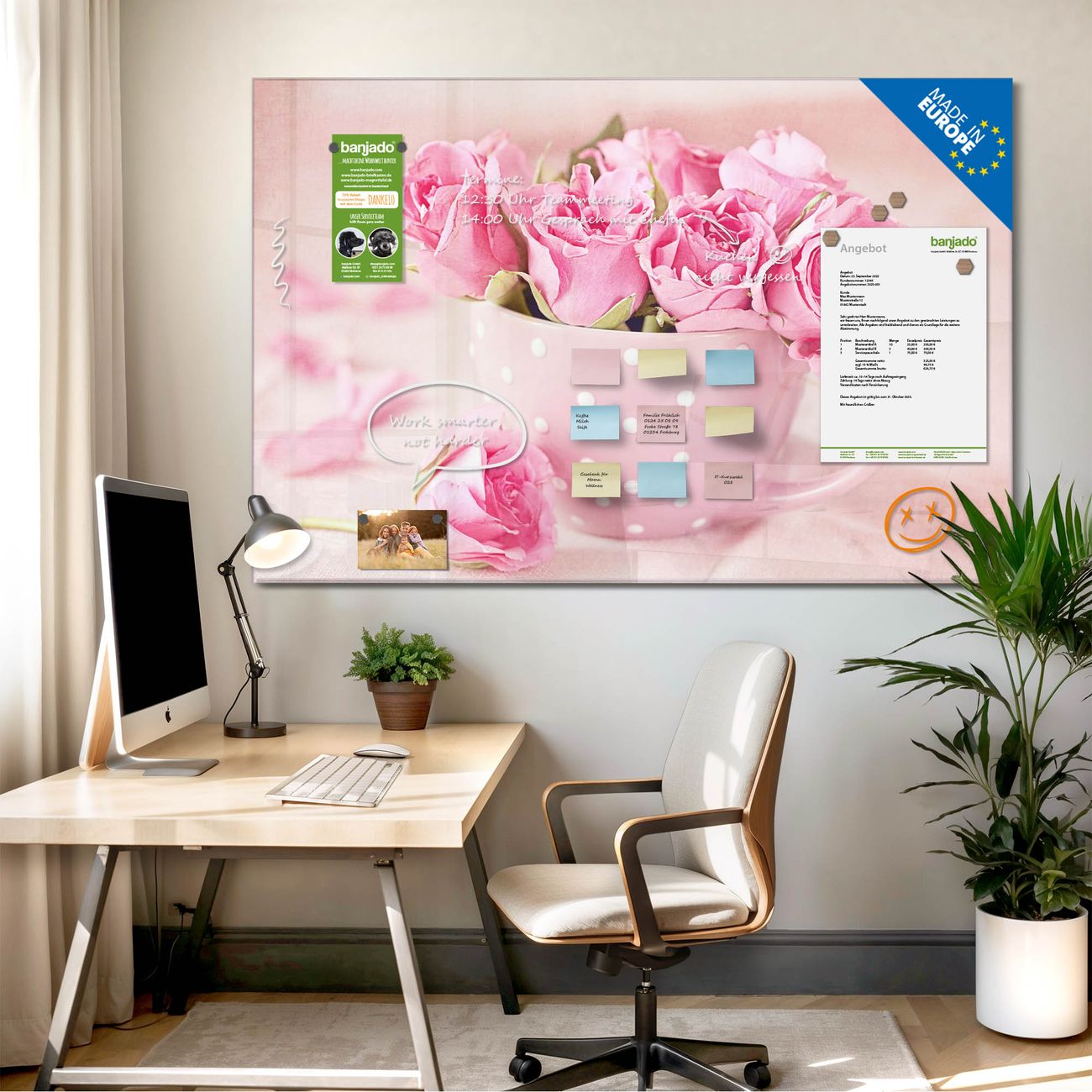 Glas Magnettafel im Querformat Motiv Tasse Voll Rosen