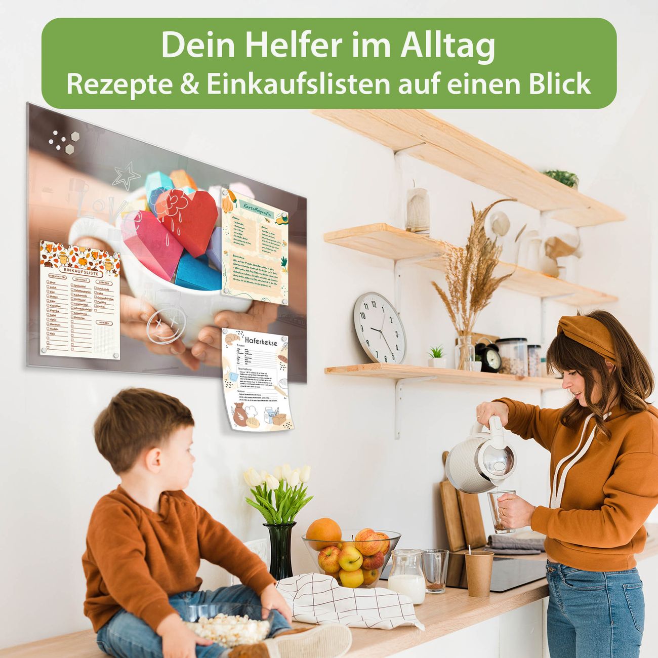 Ein Stück Design, das Ihren Alltag organisiert. Schreiben, heften, inspirieren - alles an einem Ort. Qualität, die man spürt. Montage leicht gemacht. Handwerk mit Herz - veredelt in Sachsen. Einzigartiges Design mit Motiv Motiv Tasse voller Herzen Beschreibbare Glasoberfläche, leicht zu reinigen Starke Magnetkraft durch Stahlrückwand Inklusive 4 Neodym-Magneten Flexible Montageoptionen Handveredelt in Sachsen - Qualität, die bleibt