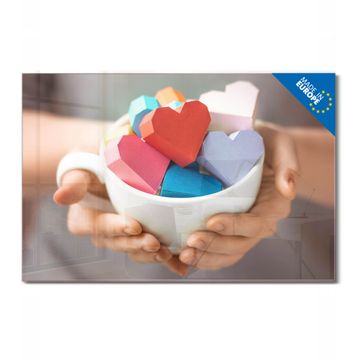 Glas Magnettafel im Querformat Motiv Tasse voller Herzen