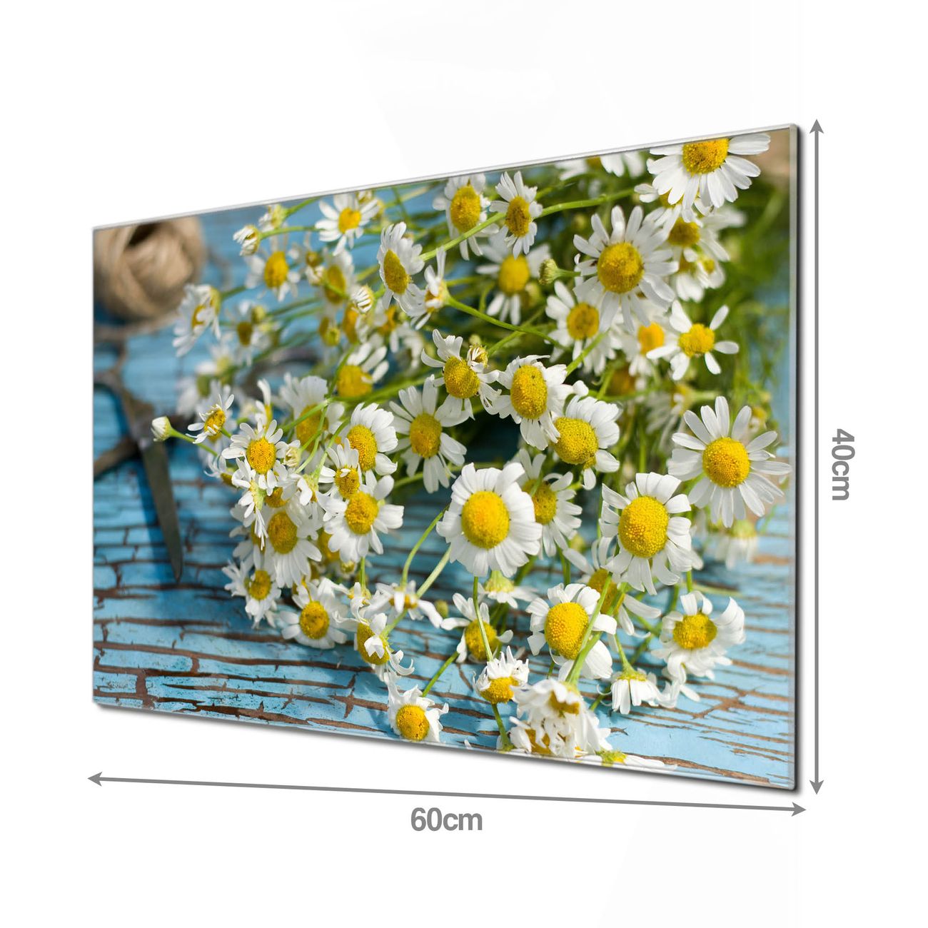 Material: 4mm Sicherheitsglas mit Metallrückwand Eigenschaften: beschreibbar, magnetisch, kratzfest Maße: 60x40x0,6cm, 3,6kg schwer Motiv Nummer 10799 Tausendschön Zubehör: inklusive 4 Neodym-Magnete