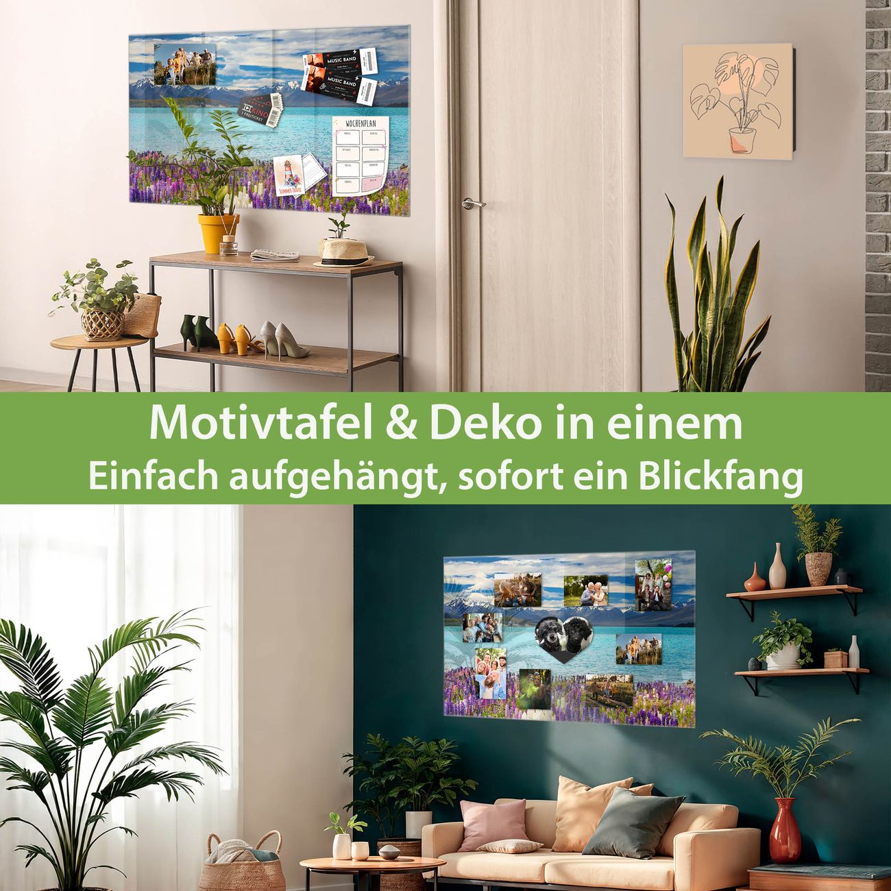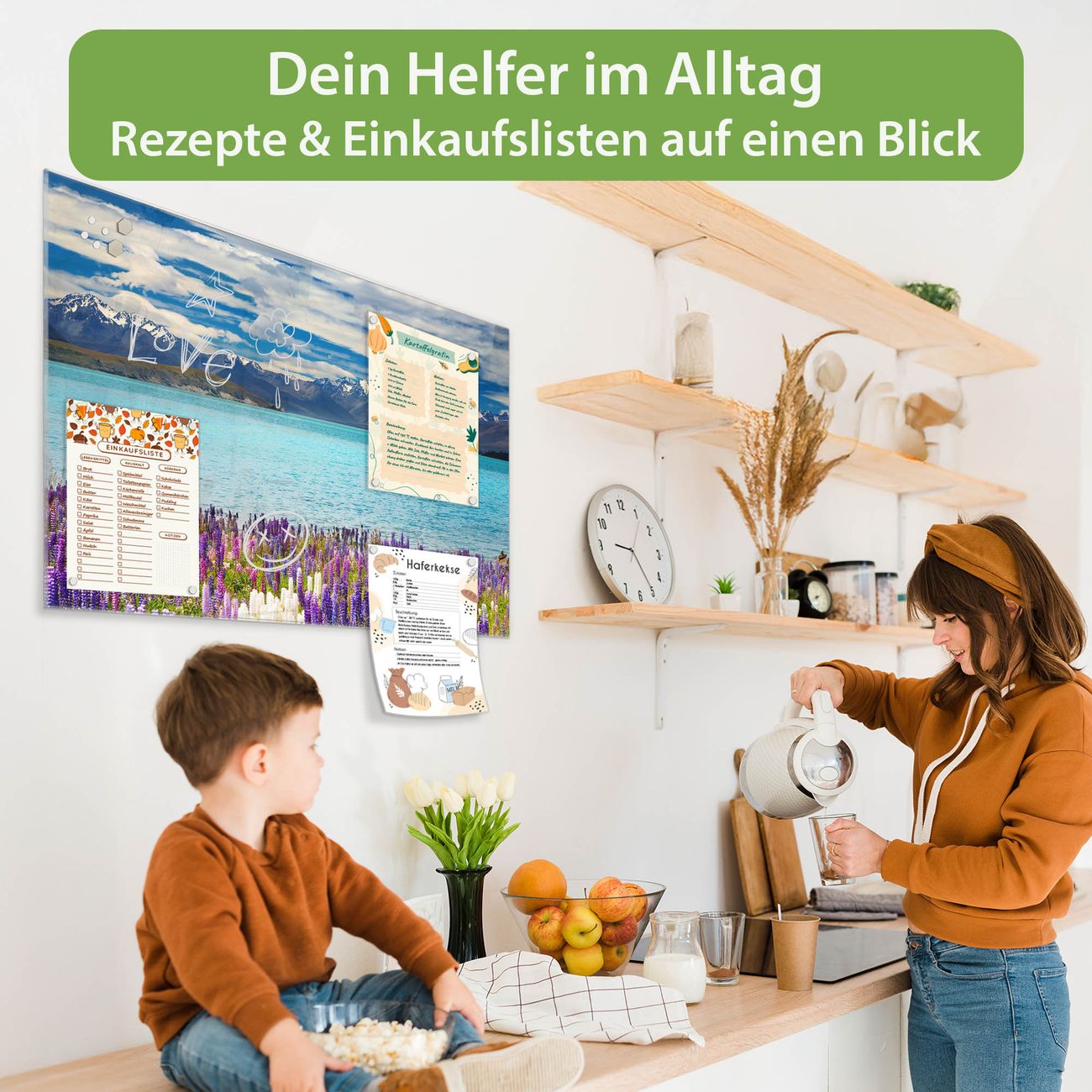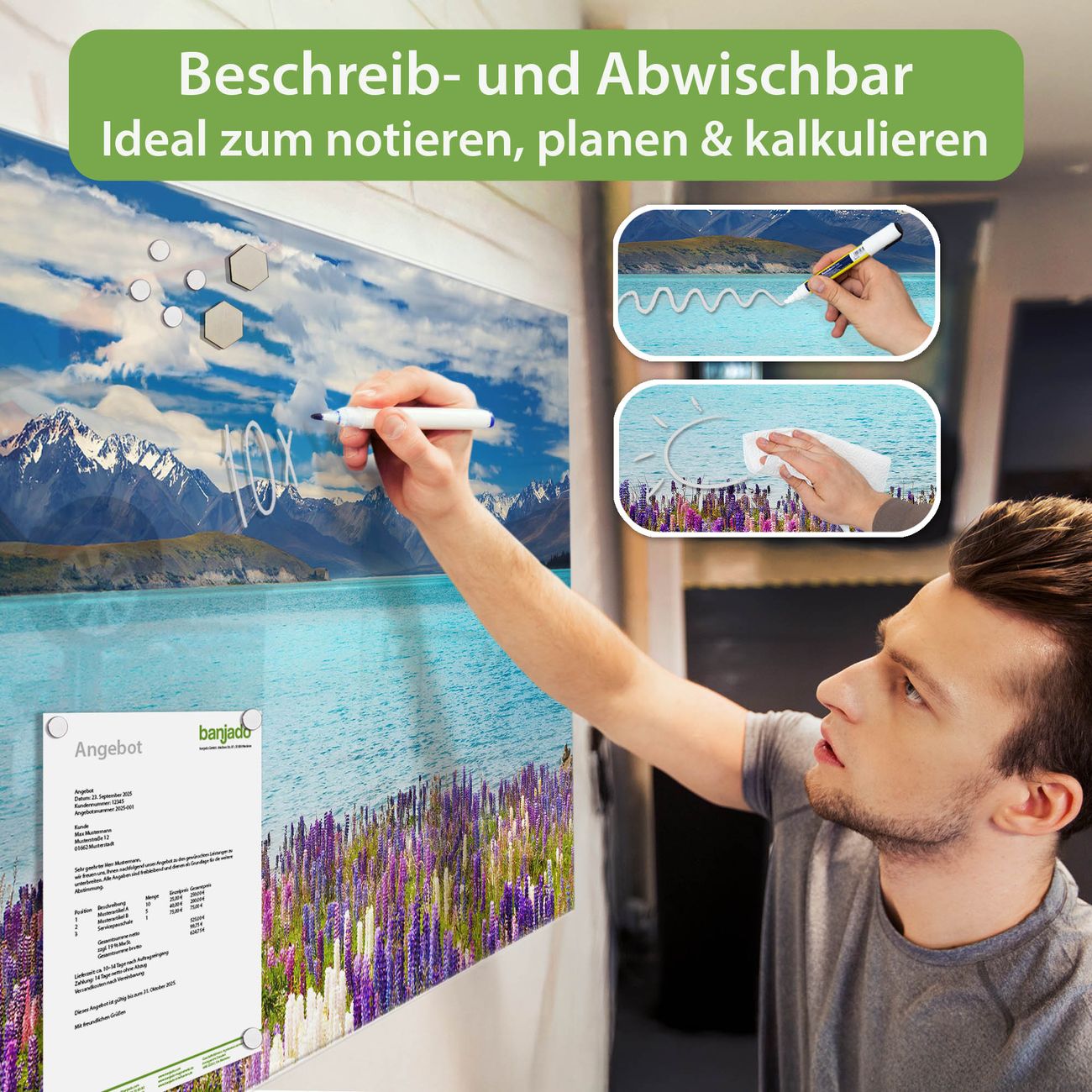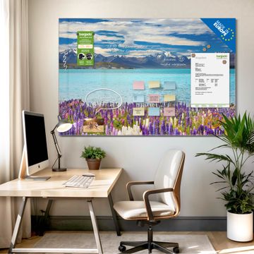 Die banjado Glas Magnettafel mit dem Motiv Motiv Tekapo See verbindet Funktionalität mit Stil. Sie ersetzt das Zettelchaos durch klare Strukturen und bringt dabei eine warme, natürliche Atmosphäre in Ihr Zuhause. Ob im Büro, in der Küche oder im Eingangsbereich - dieses Design-Board zieht Blicke an und sorgt für Ordnung mit Charakter.