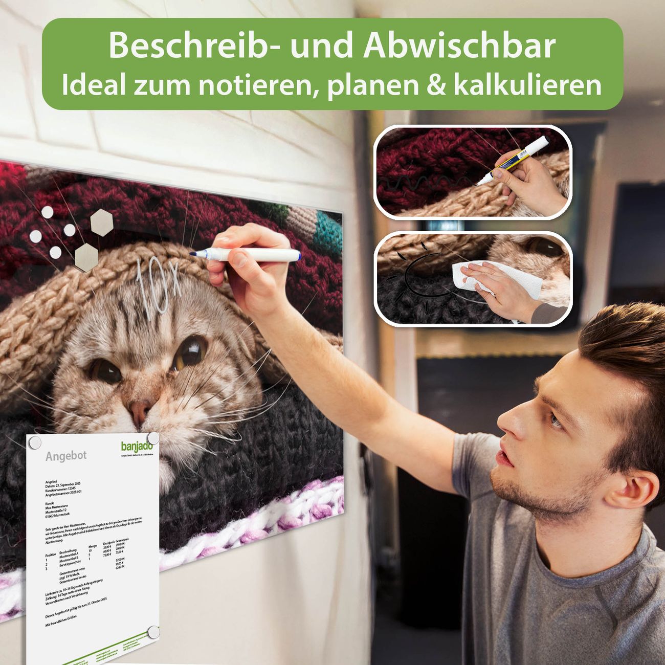 Jede Glas Magnettafel wird in unserer Werkstatt von Hand gefertigt und sorgfältig geprüft. So erhalten Sie ein echtes Qualitätsprodukt, das Funktion und Ästhetik perfekt vereint.?? Warum banjado?