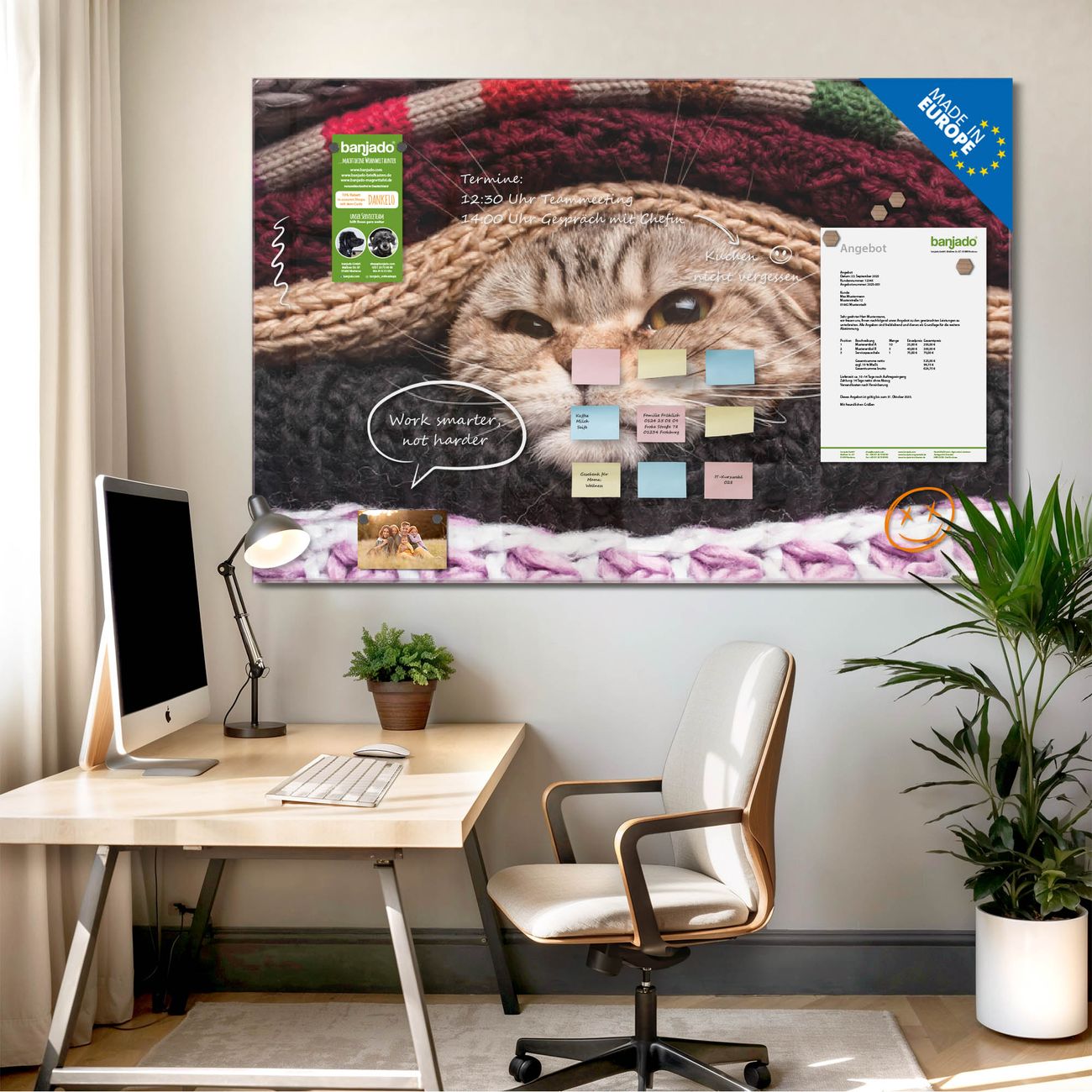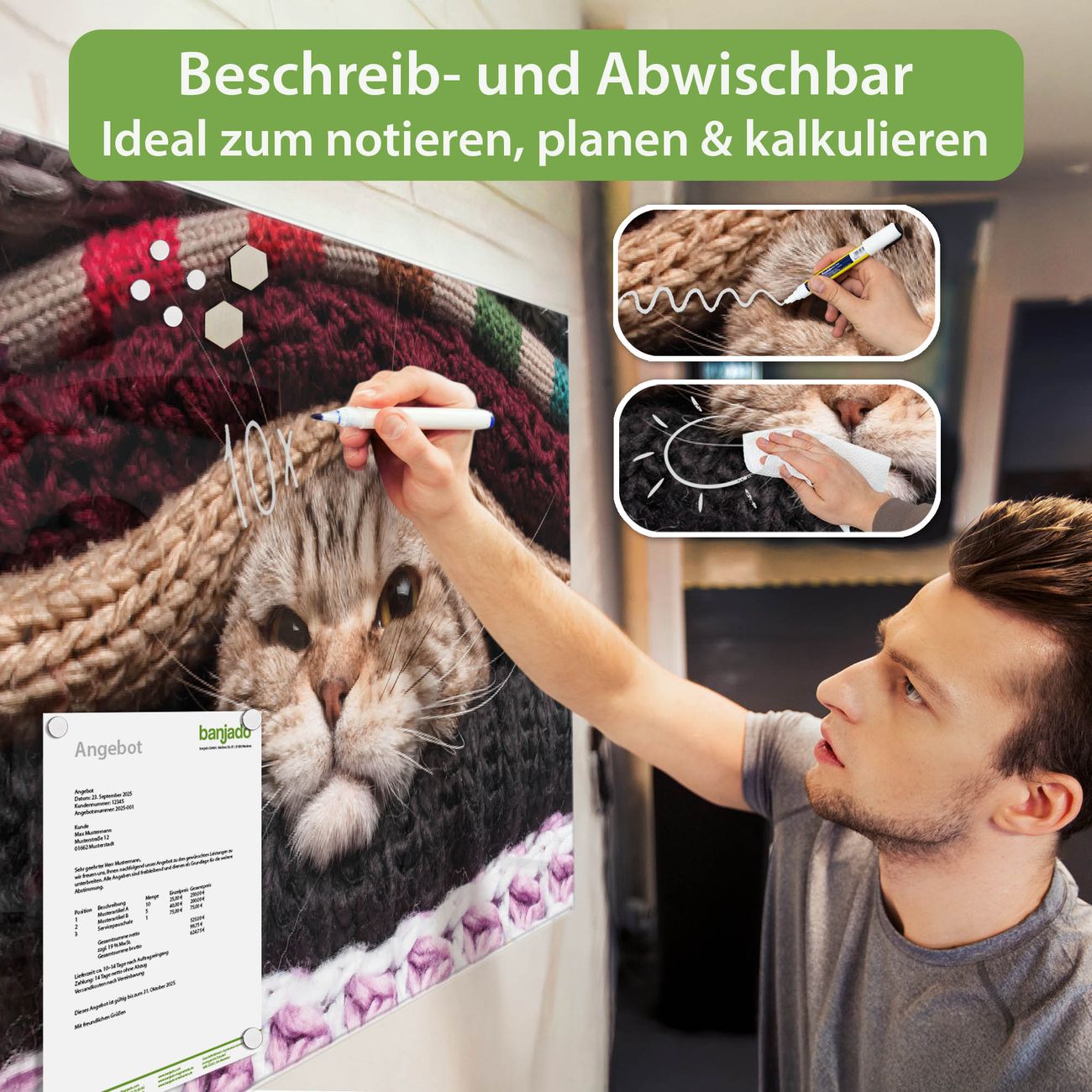 Jede Glas Magnettafel wird in unserer Werkstatt von Hand gefertigt und sorgfältig geprüft. So erhalten Sie ein echtes Qualitätsprodukt, das Funktion und Ästhetik perfekt vereint.?? Warum banjado?