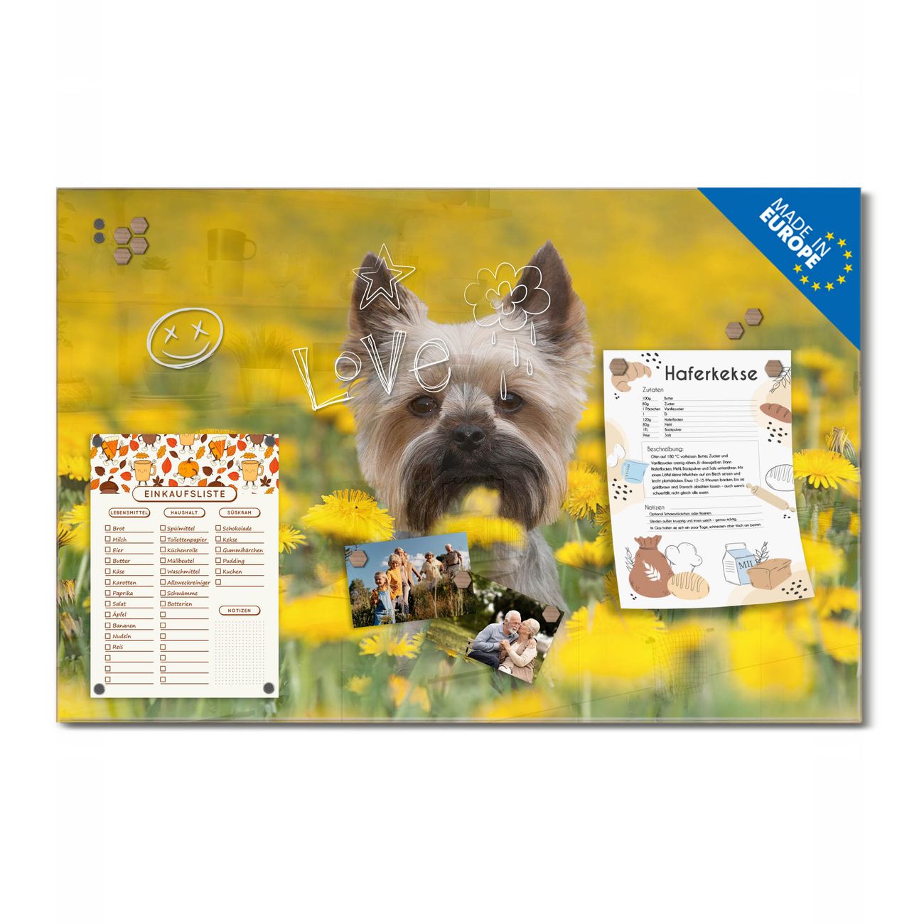 Ein Stück Design, das Ihren Alltag organisiert. Schreiben, heften, inspirieren - alles an einem Ort. Qualität, die man spürt. Montage leicht gemacht. Handwerk mit Herz - veredelt in Sachsen. Einzigartiges Design mit Motiv Motiv Tiffy Beschreibbare Glasoberfläche, leicht zu reinigen Starke Magnetkraft durch Stahlrückwand Inklusive 4 Neodym-Magneten Flexible Montageoptionen Handveredelt in Sachsen - Qualität, die bleibt