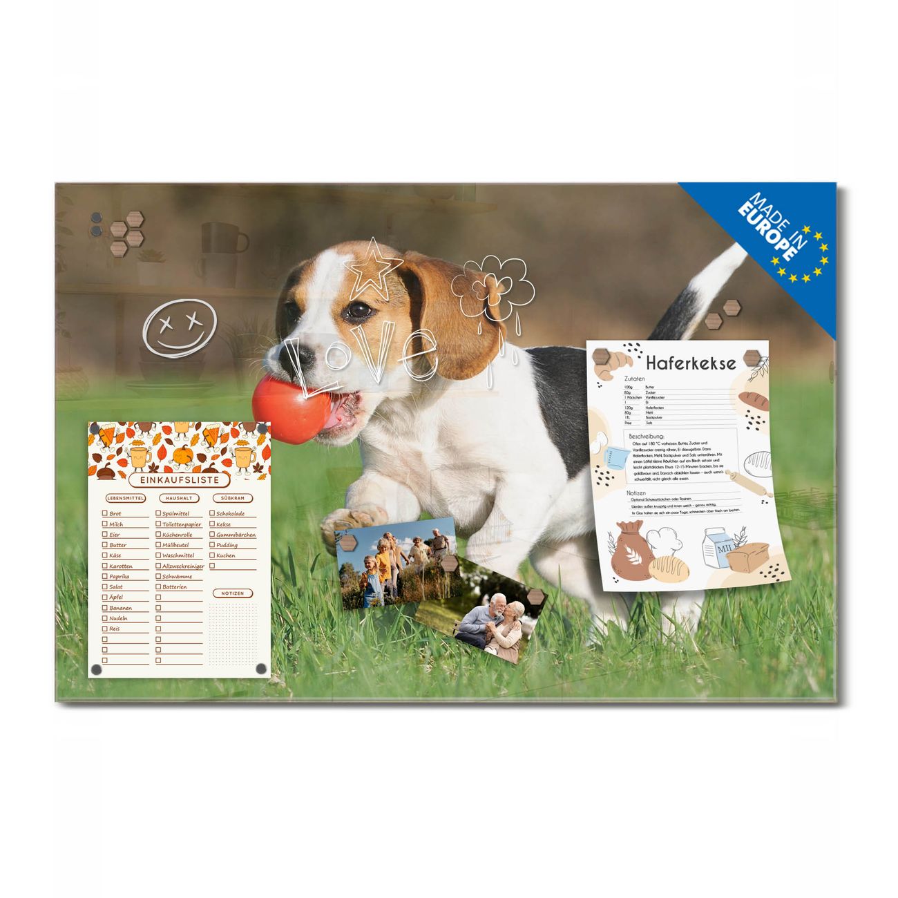 Material: 4mm Sicherheitsglas mit Metallrückwand Eigenschaften: beschreibbar, magnetisch, kratzfest Maße: 75x50x0,6cm, 5,63kg schwer Motiv Nummer 12361 Trixi Zubehör: inklusive 4 Neodym-Magnete