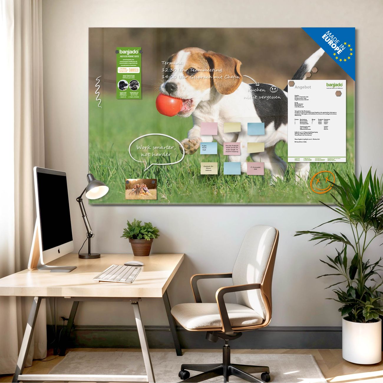 Die banjado Glas Magnettafel mit dem Motiv Motiv Trixi verbindet Funktionalität mit Stil. Sie ersetzt das Zettelchaos durch klare Strukturen und bringt dabei eine warme, natürliche Atmosphäre in Ihr Zuhause. Ob im Büro, in der Küche oder im Eingangsbereich - dieses Design-Board zieht Blicke an und sorgt für Ordnung mit Charakter.
