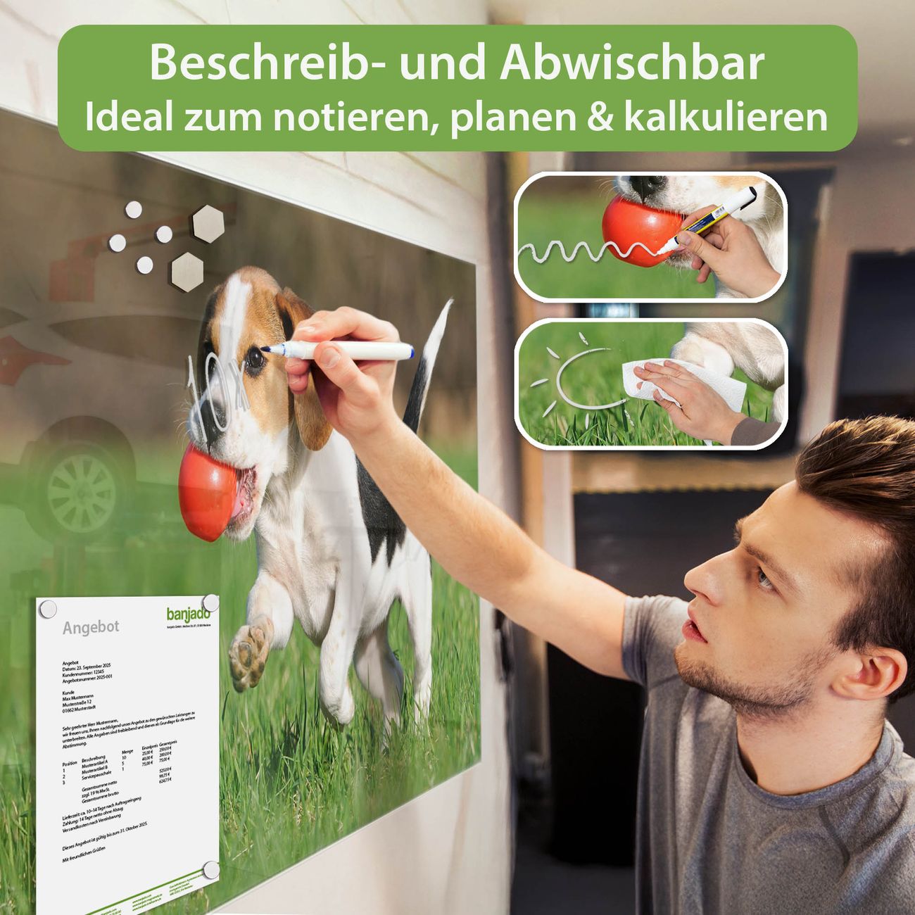 Bitte beachten Sie, dass ausschliessliche spezielle Magnete an der Glastafel haften. Wir empfehlen banjado Neodym Magnete, diese sind durch uns auf Wirksamkeit geprüft.