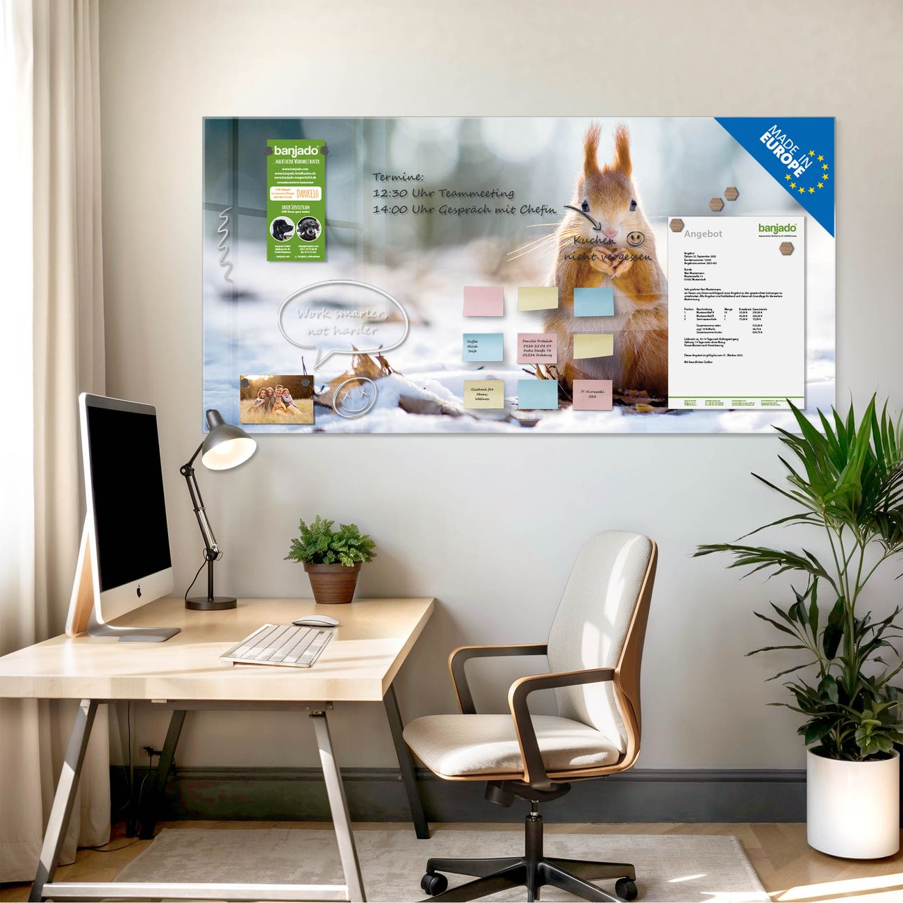 Jede Glas Magnettafel wird in unserer Werkstatt von Hand gefertigt und sorgfältig geprüft. So erhalten Sie ein echtes Qualitätsprodukt, das Funktion und Ästhetik perfekt vereint.?? Warum banjado?