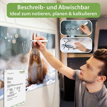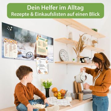 Auf der glatten Glasoberfläche lassen sich Termine, Rezepte oder Notizen ganz einfach mit Kreidestiften festhalten und rückstandslos entfernen. Starke Neodym-Magnete halten Ihre wichtigsten Erinnerungen sicher an Ort und Stelle. So entsteht Ihre ganz persönliche Ideenwand - jeden Tag neu.