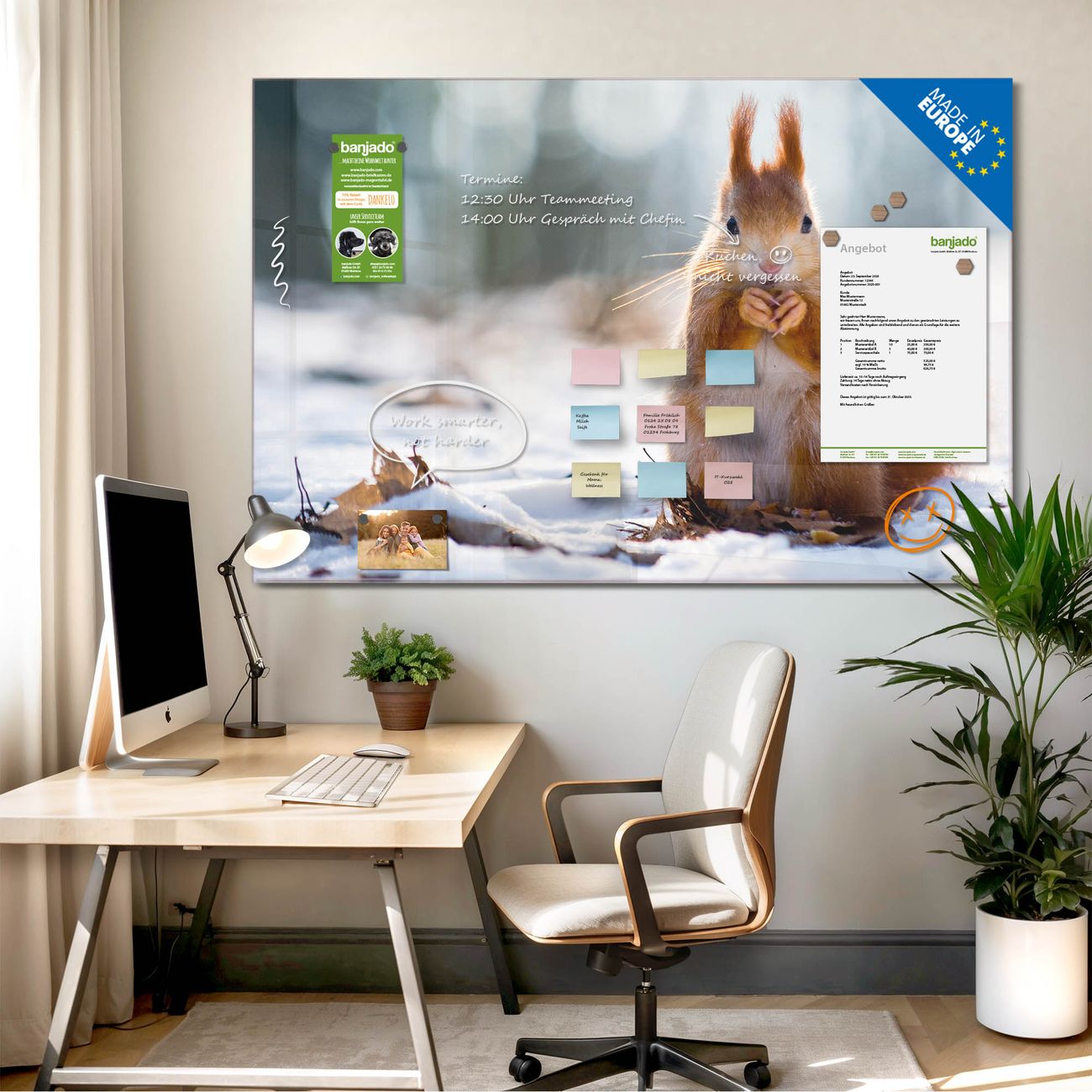 Jede Glas Magnettafel wird in unserer Werkstatt von Hand gefertigt und sorgfältig geprüft. So erhalten Sie ein echtes Qualitätsprodukt, das Funktion und Ästhetik perfekt vereint.?? Warum banjado?