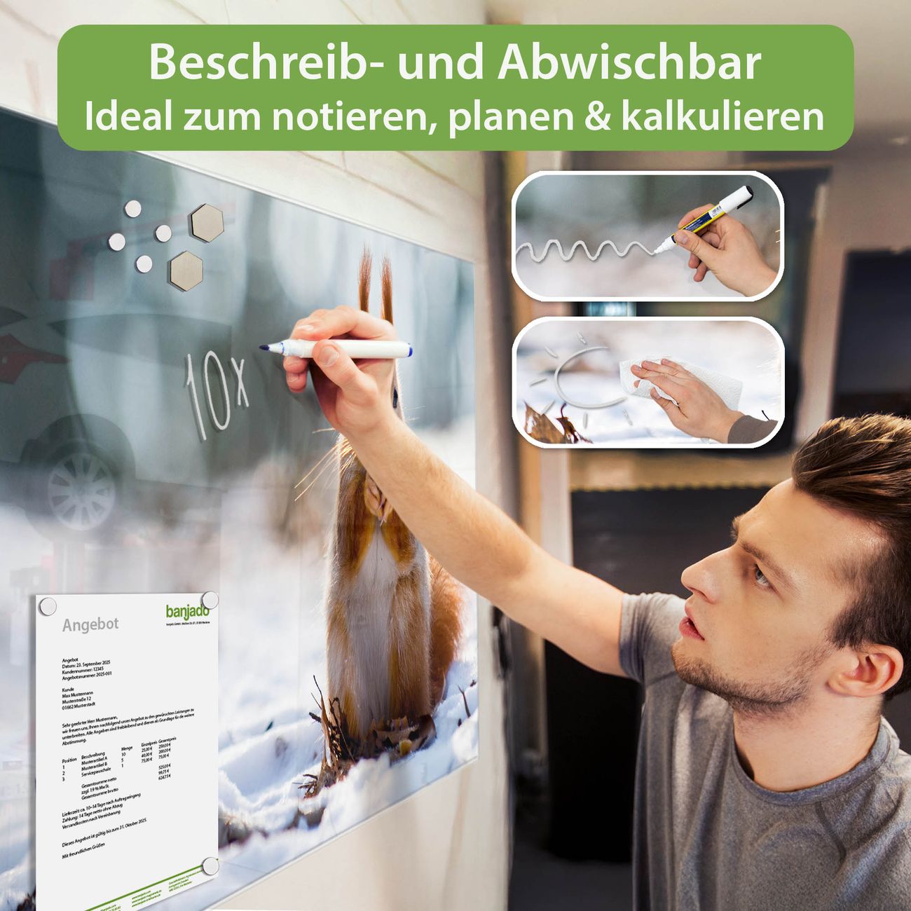 Bitte beachten Sie, dass ausschliessliche spezielle Magnete an der Glastafel haften. Wir empfehlen banjado Neodym Magnete, diese sind durch uns auf Wirksamkeit geprüft.
