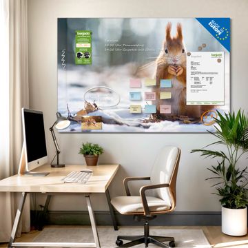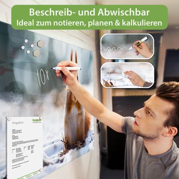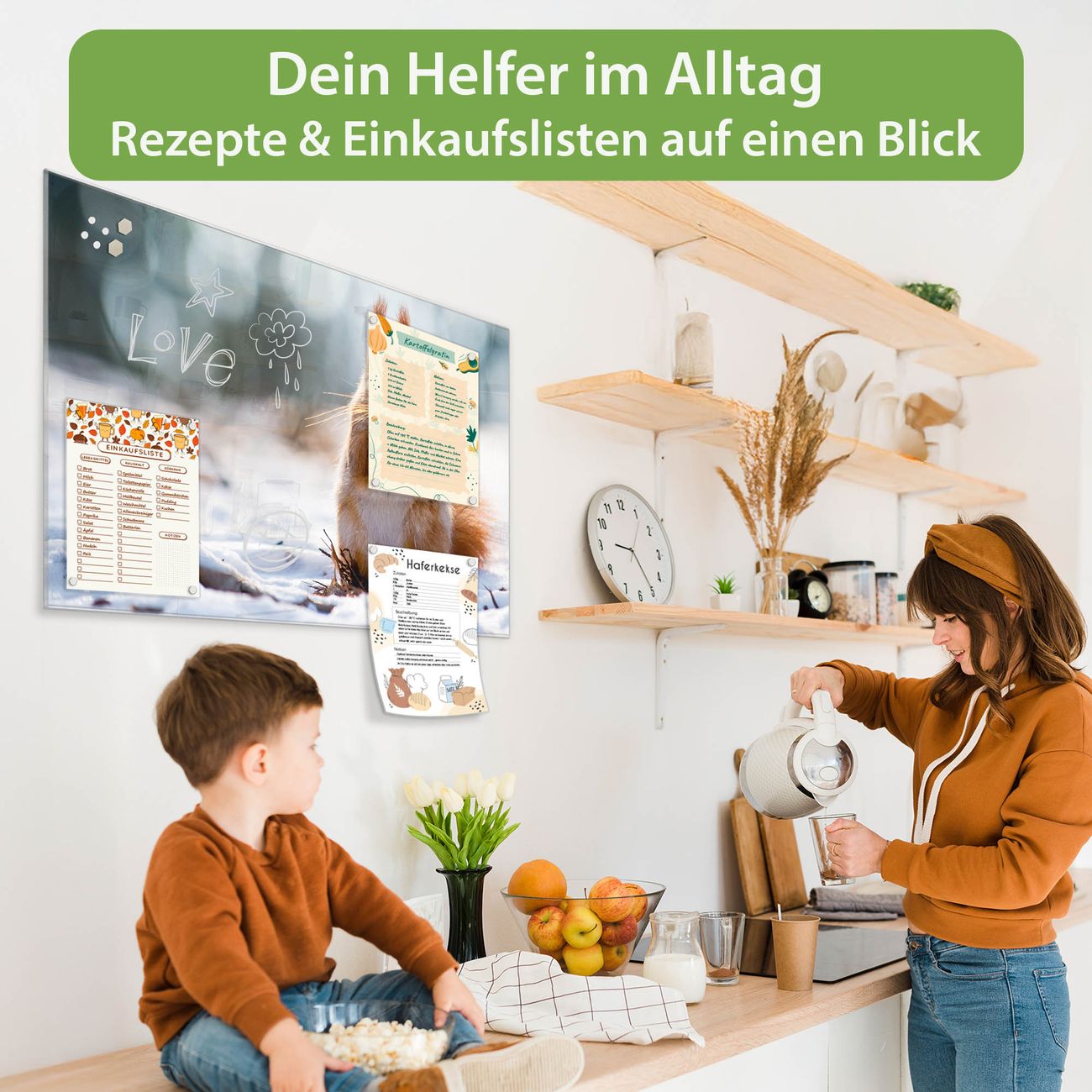 Auf der glatten Glasoberfläche lassen sich Termine, Rezepte oder Notizen ganz einfach mit Kreidestiften festhalten und rückstandslos entfernen. Starke Neodym-Magnete halten Ihre wichtigsten Erinnerungen sicher an Ort und Stelle. So entsteht Ihre ganz persönliche Ideenwand - jeden Tag neu.