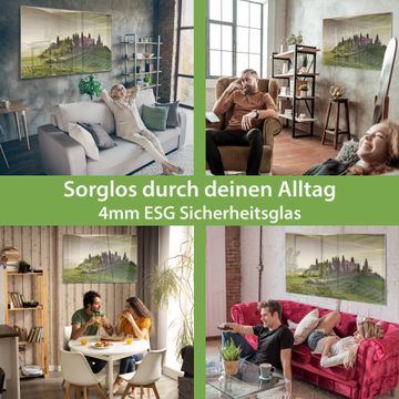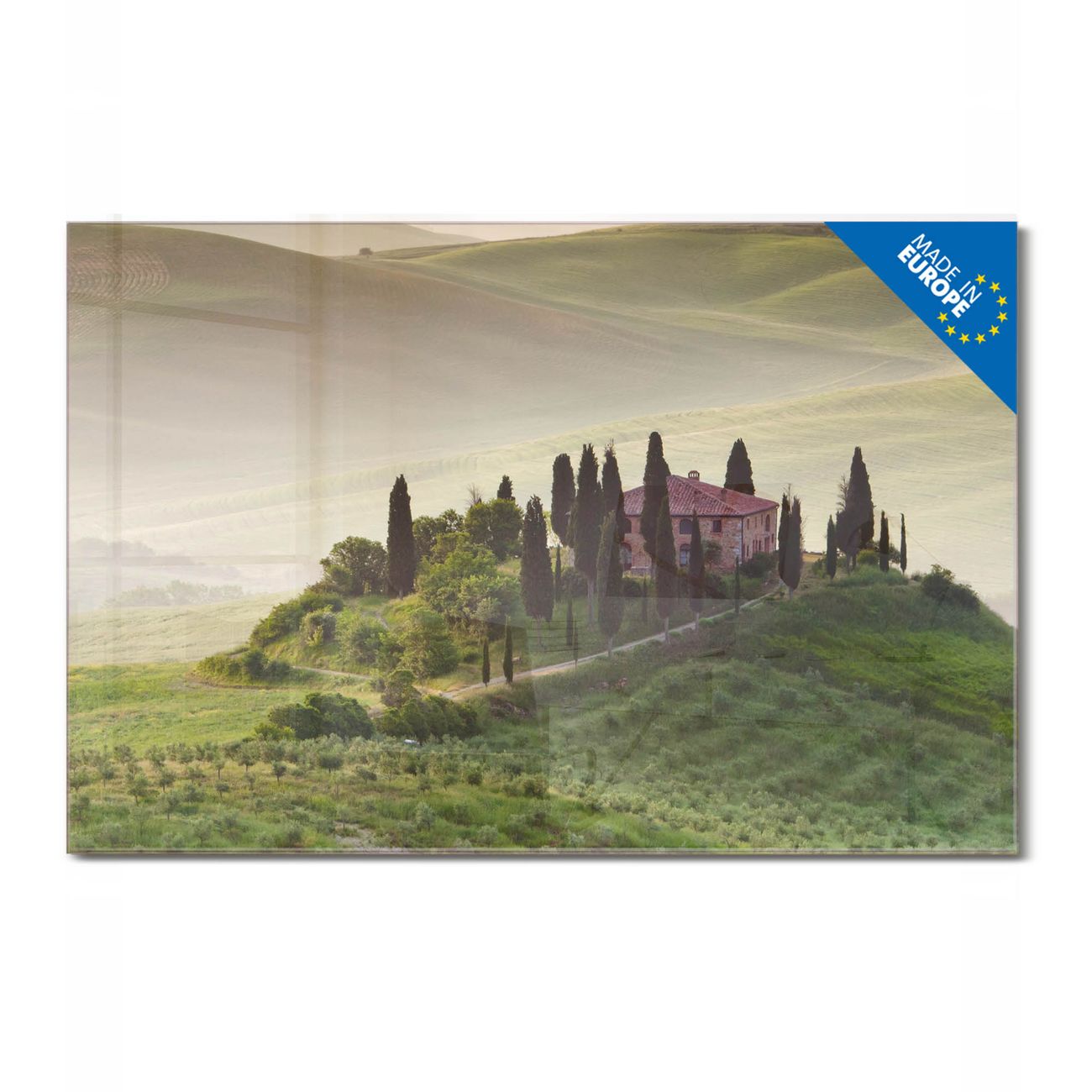 Material: 4mm Sicherheitsglas mit Metallrückwand Eigenschaften: beschreibbar, magnetisch, kratzfest Maße: 90x60x0,6cm, 8,10kg schwer Motiv Nummer 10433 Toscana Zubehör: inklusive 4 Neodym-Magnete