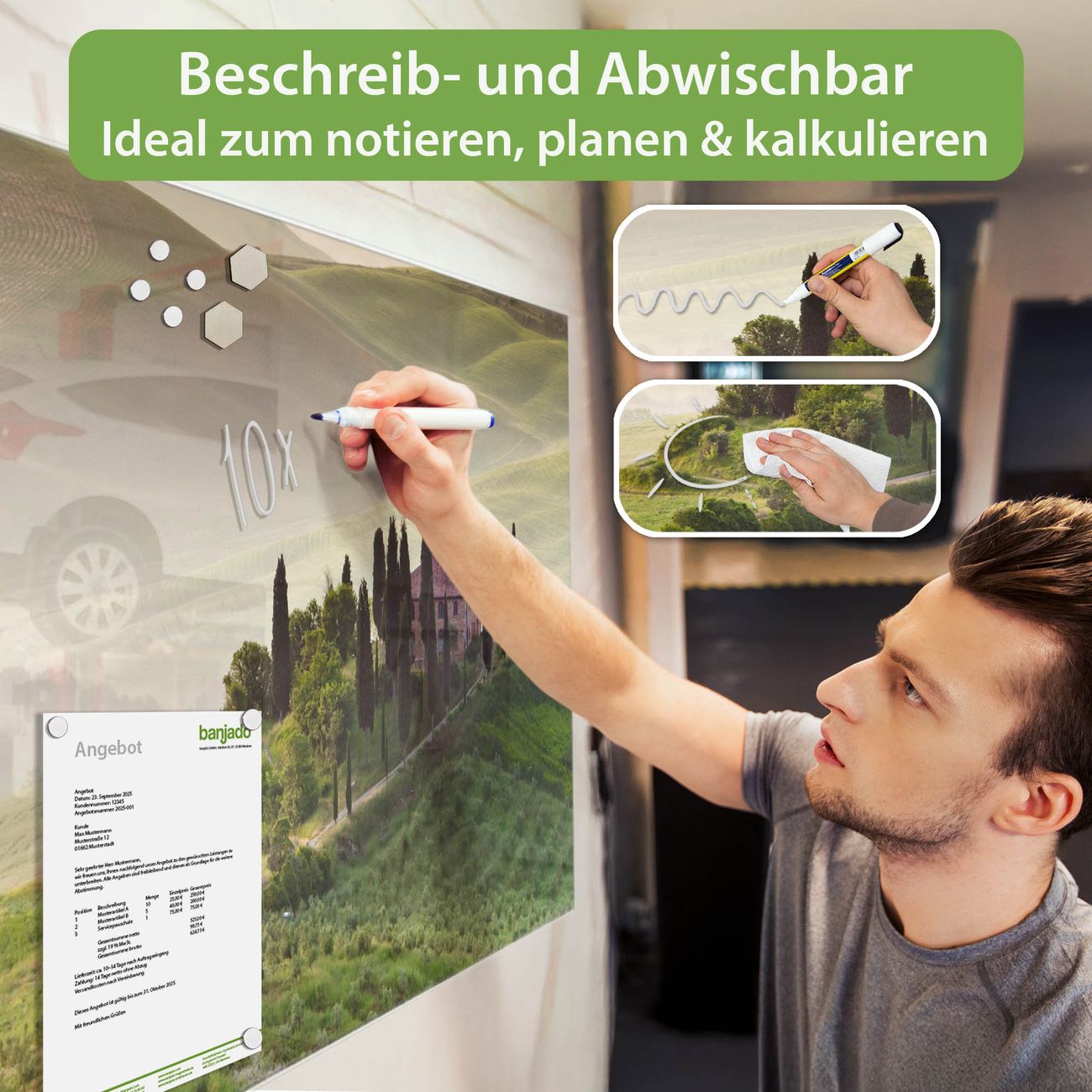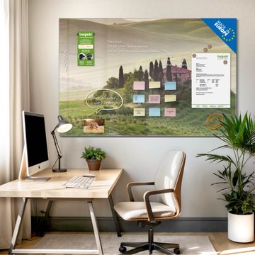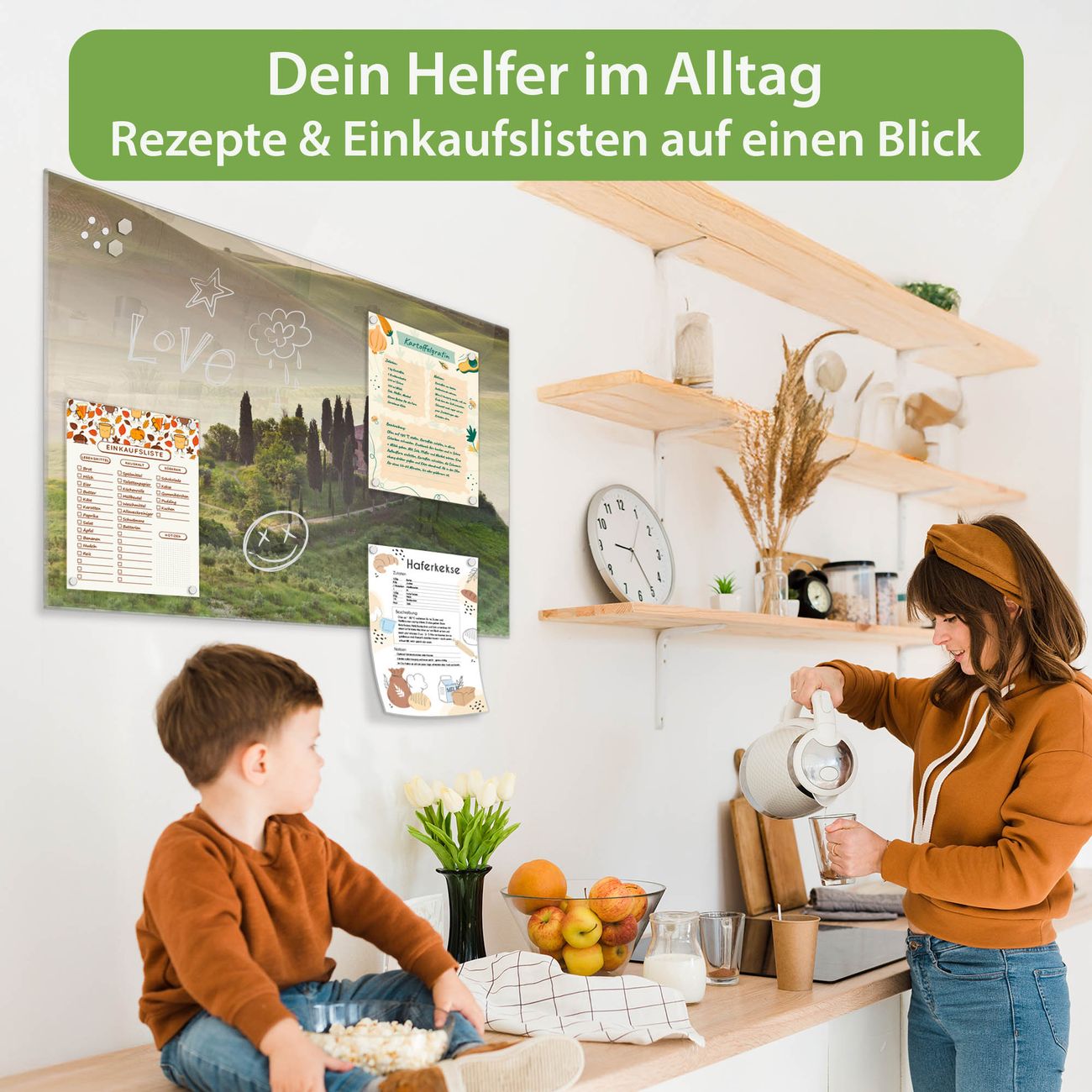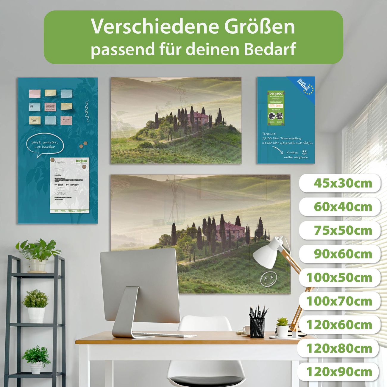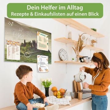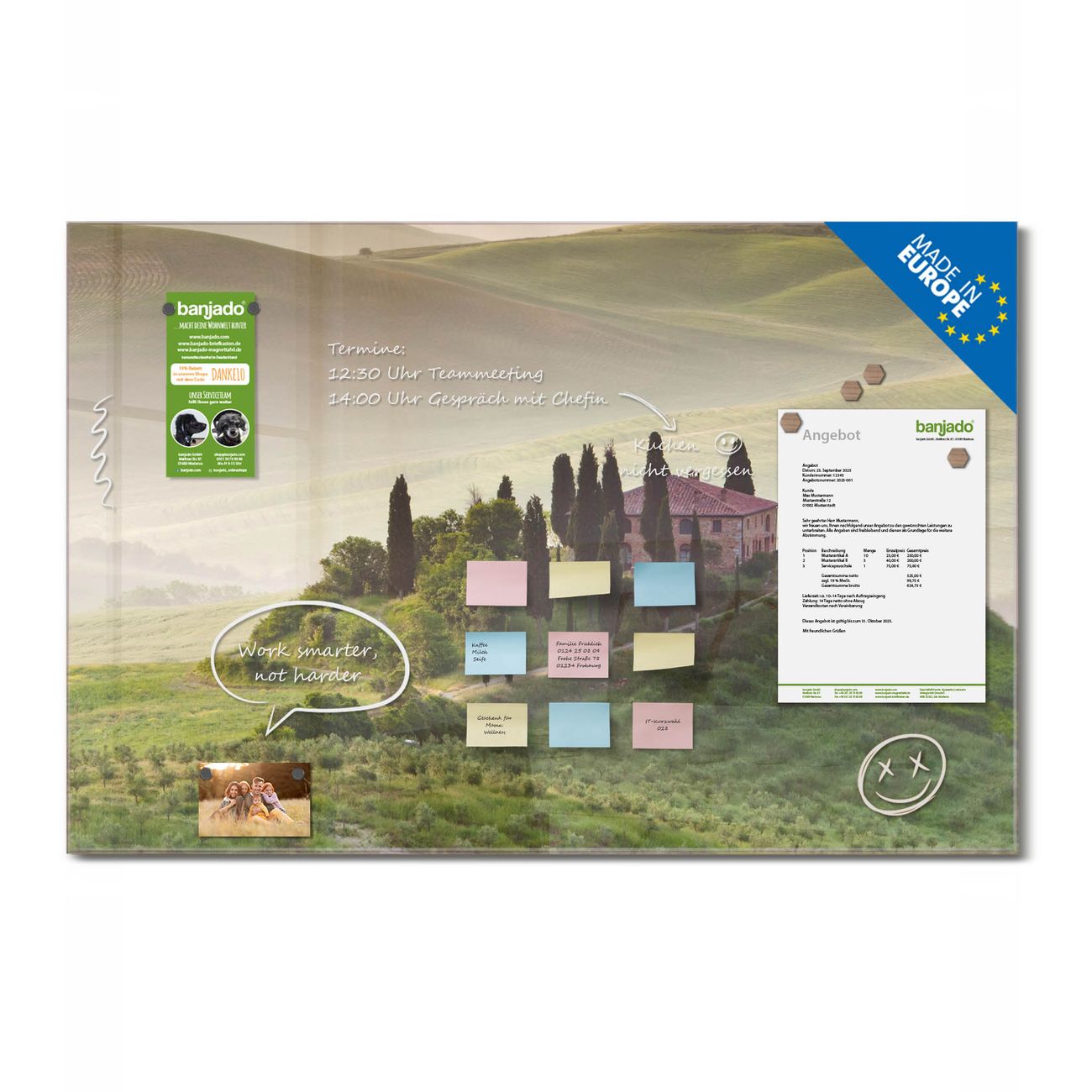 Die banjado Glas Magnettafel mit dem Motiv Motiv Toscana verbindet Funktionalität mit Stil. Sie ersetzt das Zettelchaos durch klare Strukturen und bringt dabei eine warme, natürliche Atmosphäre in Ihr Zuhause. Ob im Büro, in der Küche oder im Eingangsbereich - dieses Design-Board zieht Blicke an und sorgt für Ordnung mit Charakter.