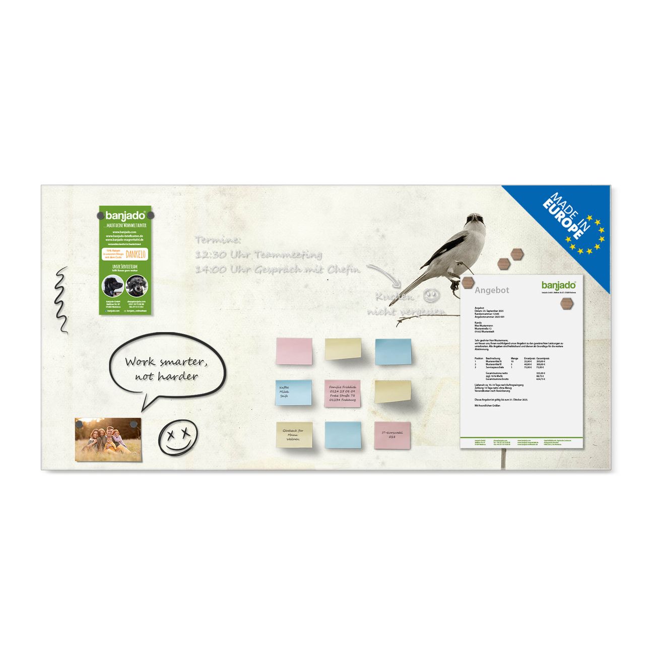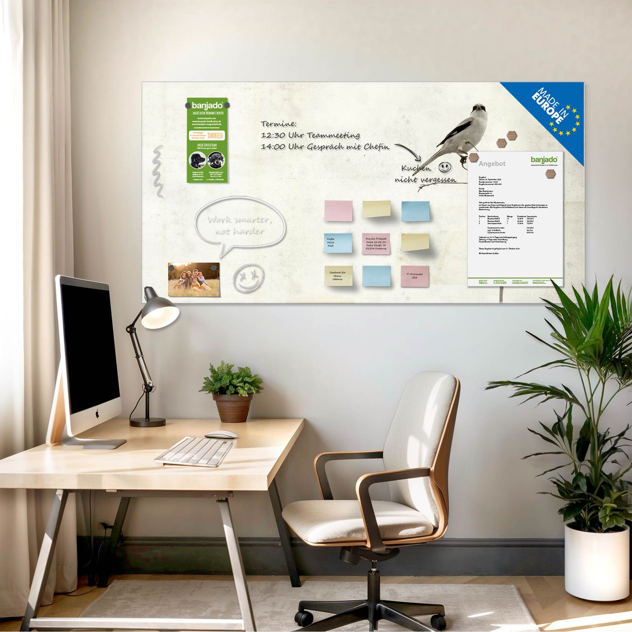 Jede Glas Magnettafel wird in unserer Werkstatt von Hand gefertigt und sorgfältig geprüft. So erhalten Sie ein echtes Qualitätsprodukt, das Funktion und Ästhetik perfekt vereint.?? Warum banjado?