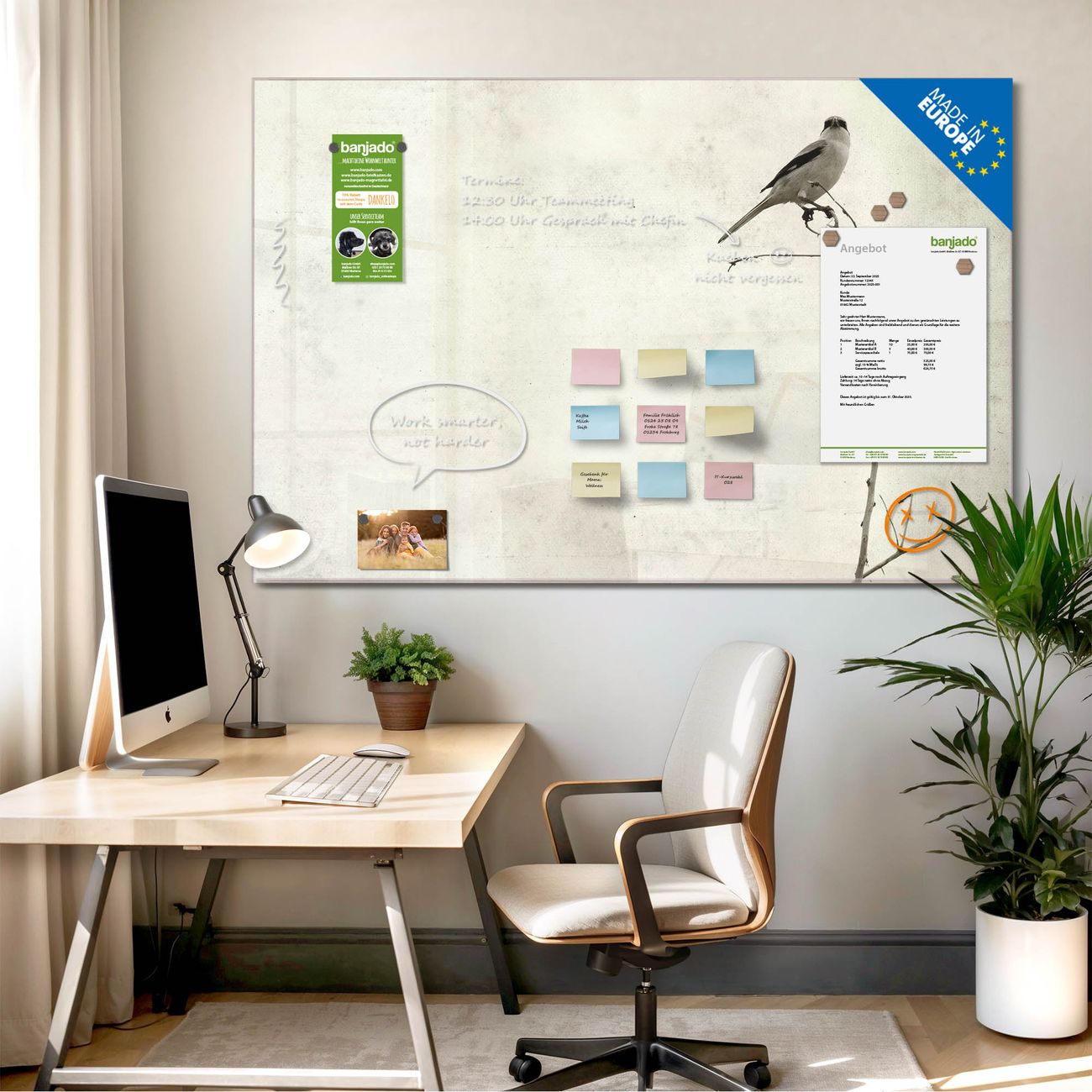 Jede Glas Magnettafel wird in unserer Werkstatt von Hand gefertigt und sorgfältig geprüft. So erhalten Sie ein echtes Qualitätsprodukt, das Funktion und Ästhetik perfekt vereint.?? Warum banjado?