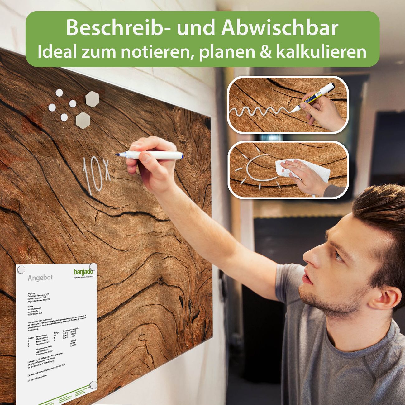Die banjado Glas Magnettafel mit dem Motiv Motiv Trockenes Holz verbindet Funktionalität mit Stil. Sie ersetzt das Zettelchaos durch klare Strukturen und bringt dabei eine warme, natürliche Atmosphäre in Ihr Zuhause. Ob im Büro, in der Küche oder im Eingangsbereich - dieses Design-Board zieht Blicke an und sorgt für Ordnung mit Charakter.