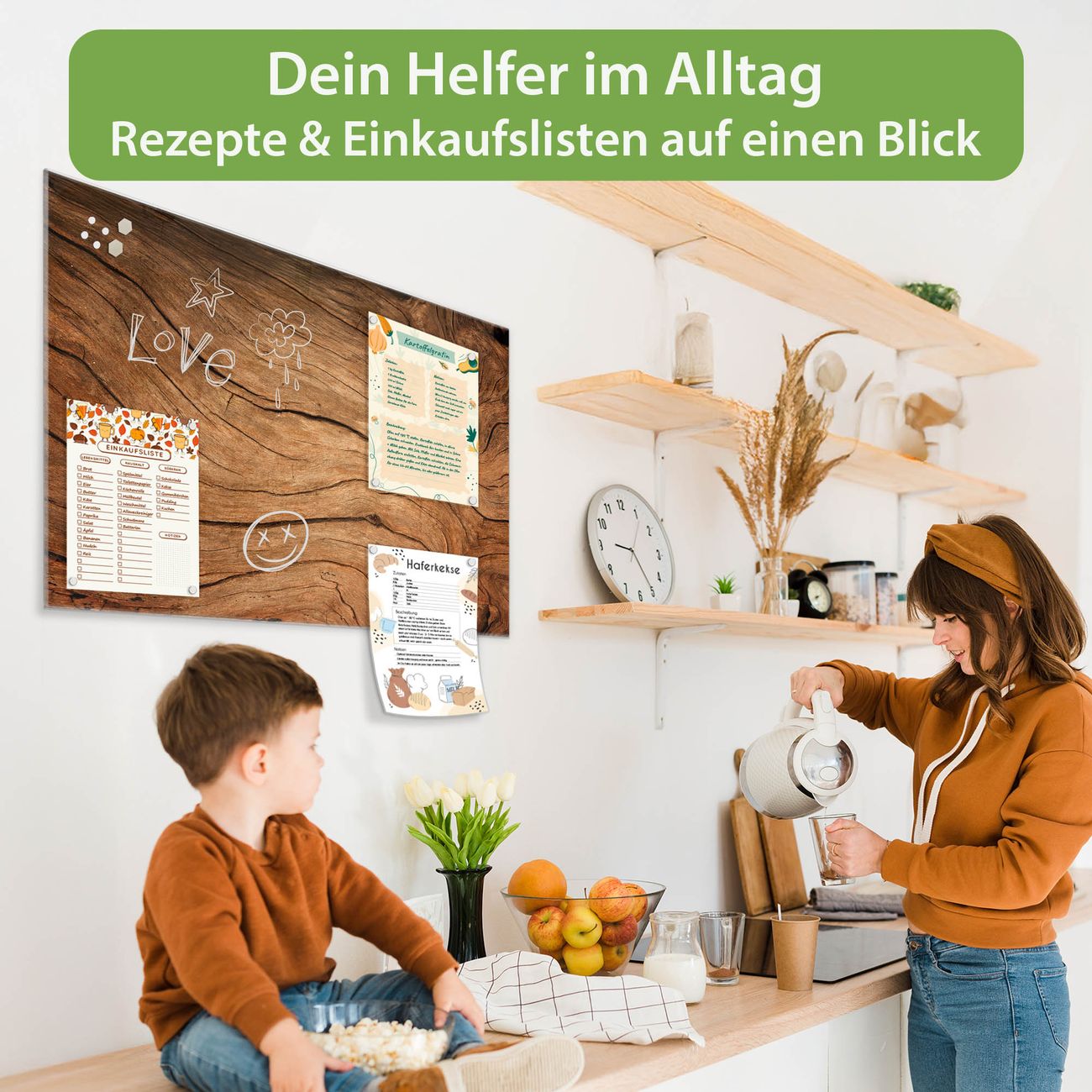 Ein Stück Design, das Ihren Alltag organisiert. Schreiben, heften, inspirieren - alles an einem Ort. Qualität, die man spürt. Montage leicht gemacht. Handwerk mit Herz - veredelt in Sachsen. Einzigartiges Design mit Motiv Motiv Trockenes Holz Beschreibbare Glasoberfläche, leicht zu reinigen Starke Magnetkraft durch Stahlrückwand Inklusive 4 Neodym-Magneten Flexible Montageoptionen Handveredelt in Sachsen - Qualität, die bleibt