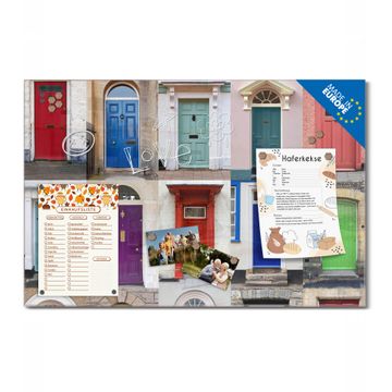 Material: 4mm Sicherheitsglas mit Metallrückwand Eigenschaften: beschreibbar, magnetisch, kratzfest Maße: 75x50x0,6cm, 5,63kg schwer Motiv Nummer 10438 Türen Zubehör: inklusive 4 Neodym-Magnete