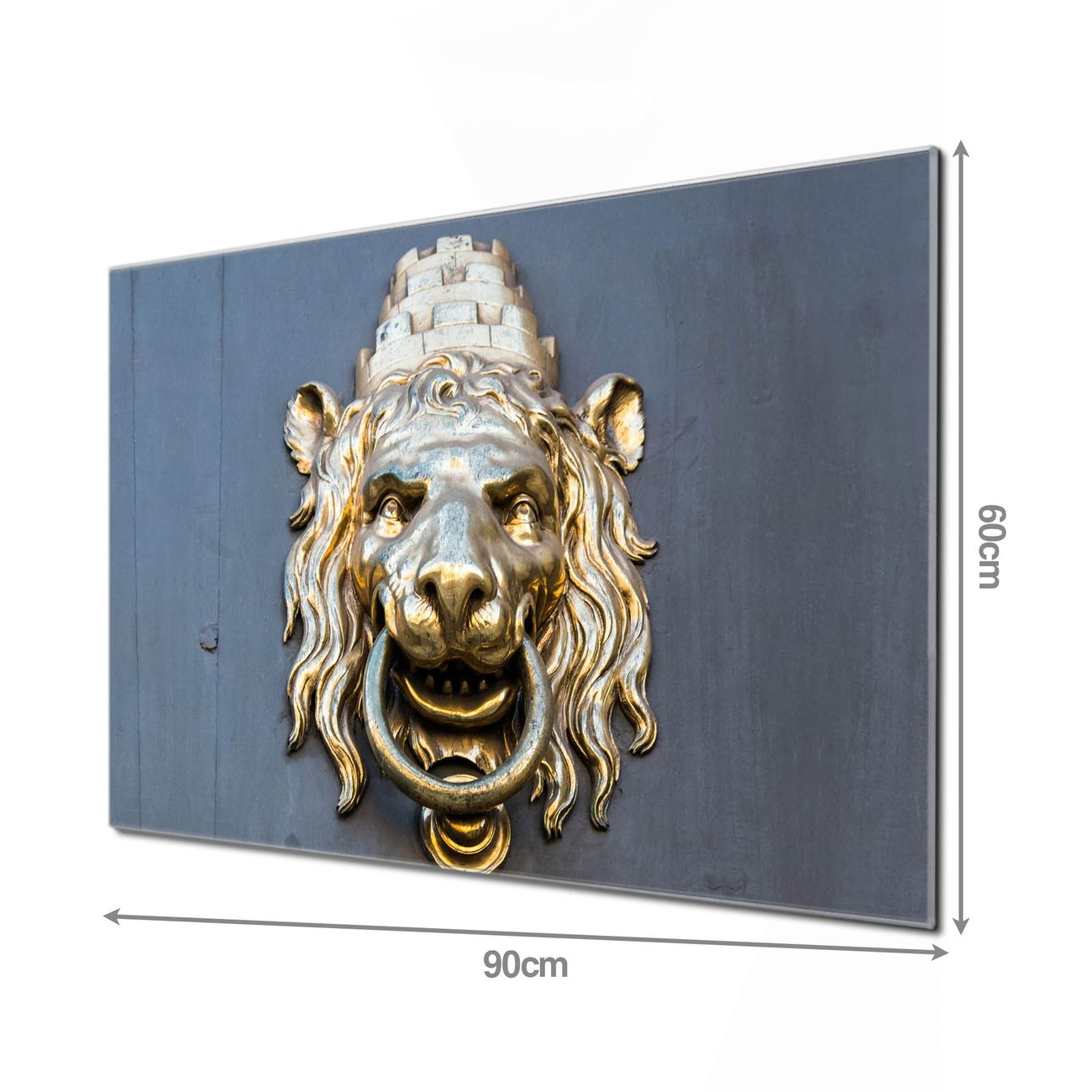Glas Magnettafel im Querformat Türklopfer Löwe