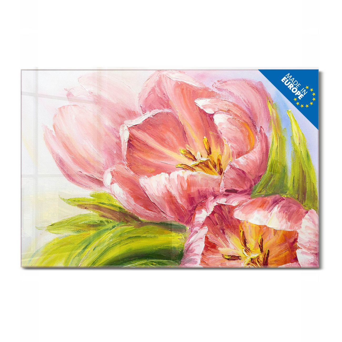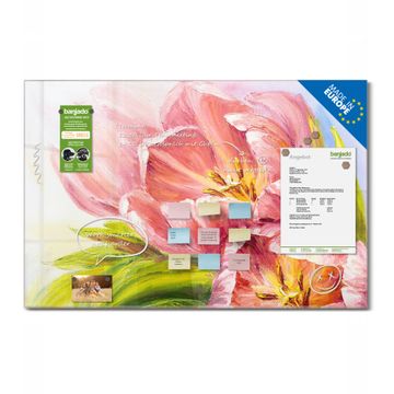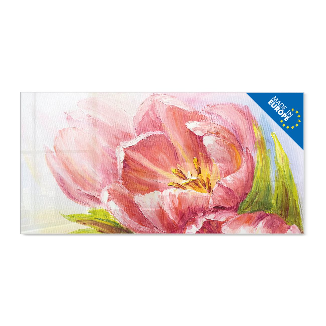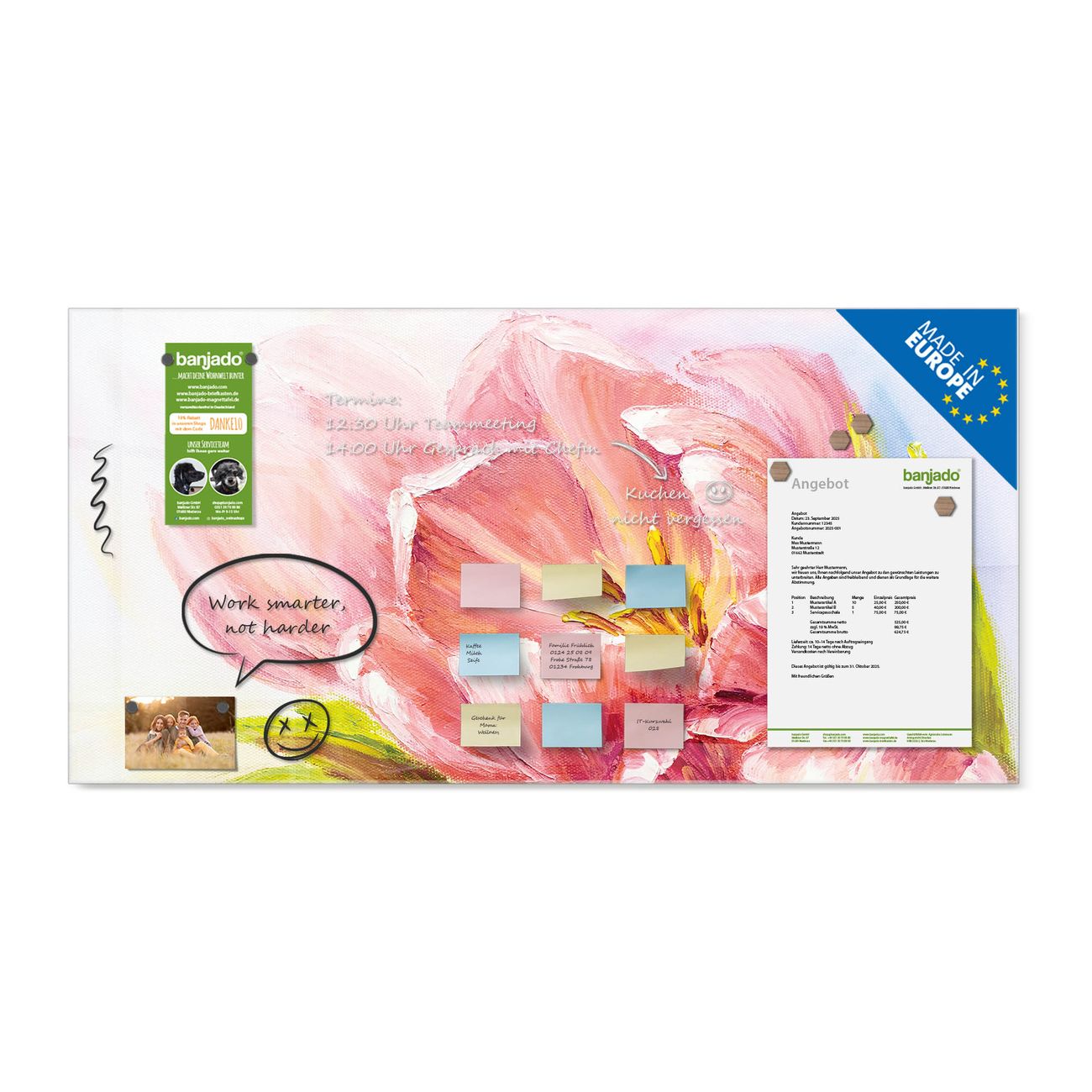 Material: 4mm Sicherheitsglas mit Metallrückwand Eigenschaften: beschreibbar, magnetisch, kratzfest Maße: 120x60x0,6cm, 10,80kg schwer Motiv Nummer 12342 Tulpen Detail Zubehör: inklusive 4 Neodym-Magnete