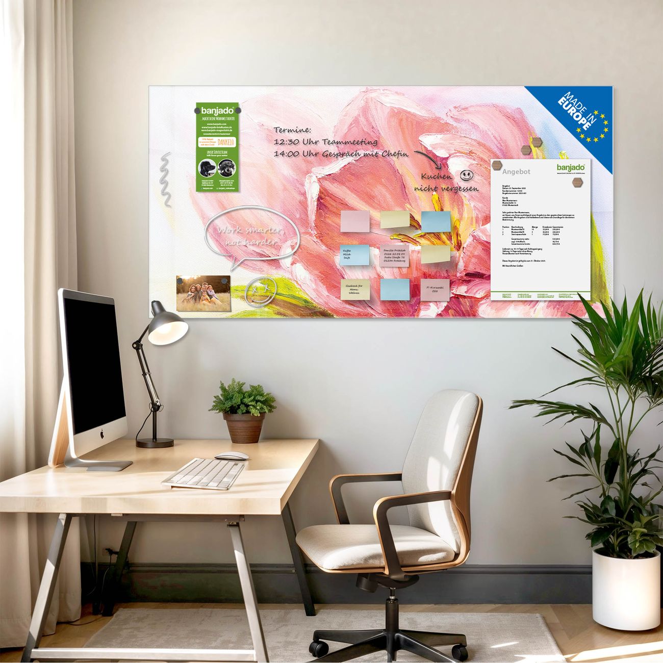 Die banjado Glas Magnettafel mit dem Motiv Motiv Tulpen Detail verbindet Funktionalität mit Stil. Sie ersetzt das Zettelchaos durch klare Strukturen und bringt dabei eine warme, natürliche Atmosphäre in Ihr Zuhause. Ob im Büro, in der Küche oder im Eingangsbereich - dieses Design-Board zieht Blicke an und sorgt für Ordnung mit Charakter.