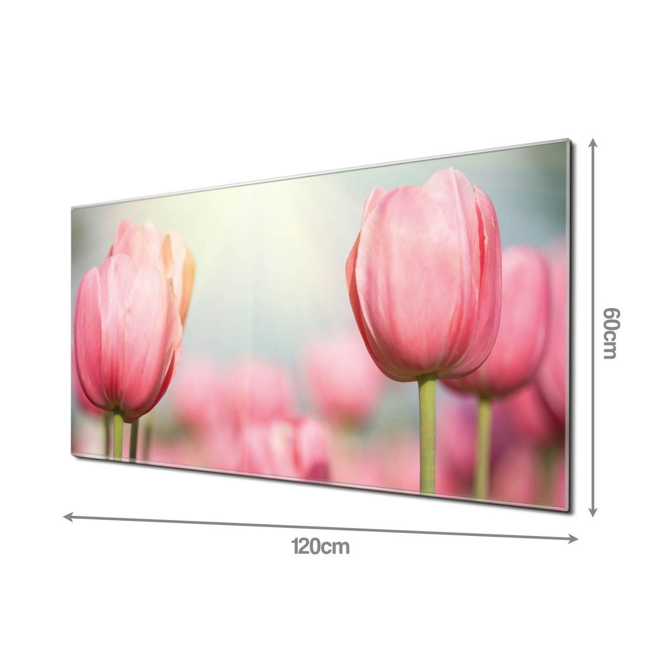 Material: 4mm Sicherheitsglas mit Metallrückwand Eigenschaften: beschreibbar, magnetisch, kratzfest Maße: 120x60x0,6cm, 10,80kg schwer Motiv Nummer 12267 Tulpen Zubehör: inklusive 4 Neodym-Magnete
