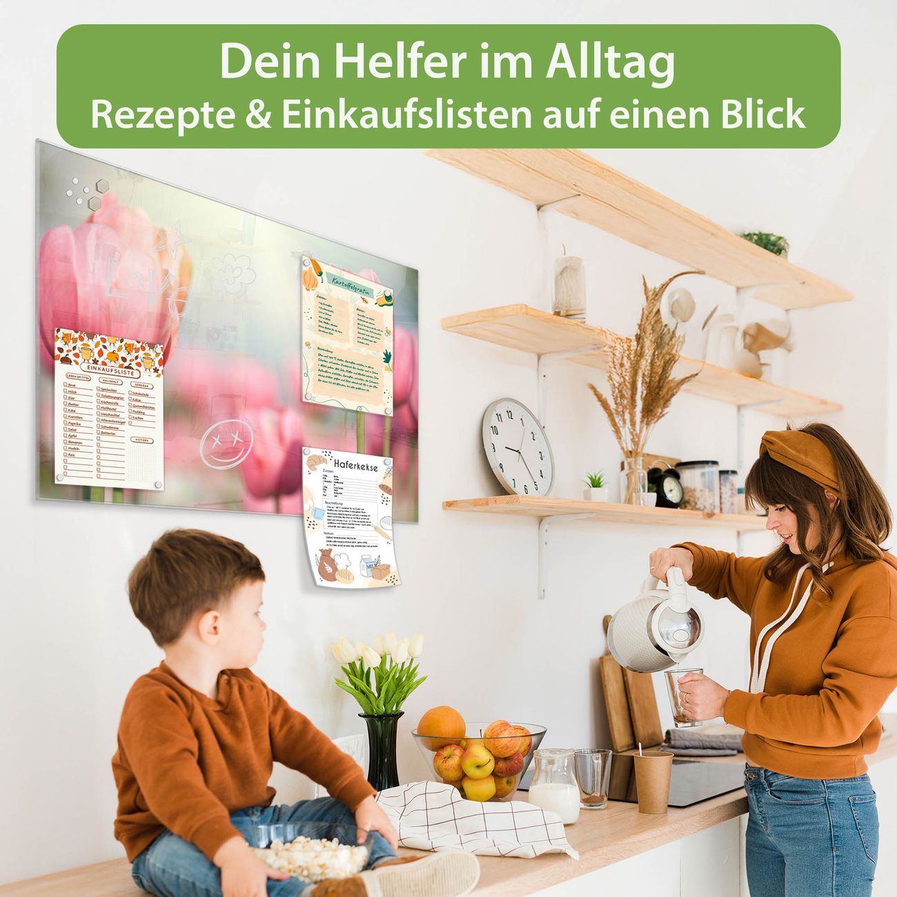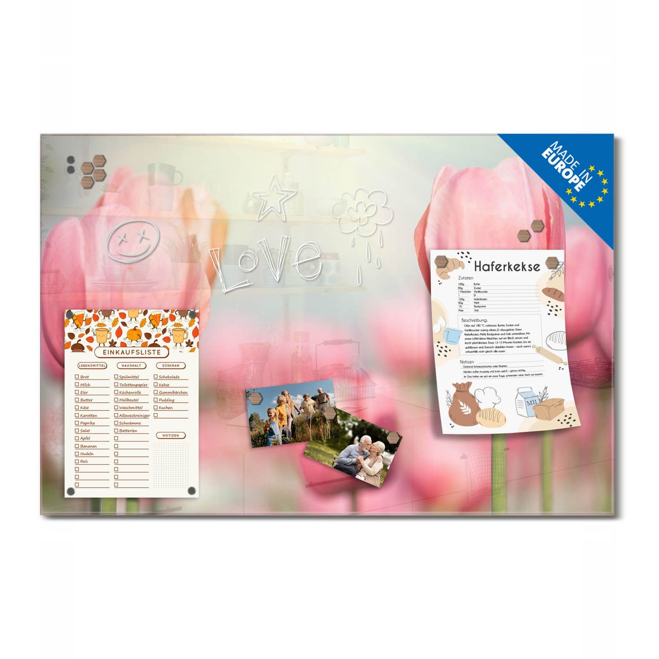Ein Stück Design, das Ihren Alltag organisiert. Schreiben, heften, inspirieren - alles an einem Ort. Qualität, die man spürt. Montage leicht gemacht. Handwerk mit Herz - veredelt in Sachsen. Einzigartiges Design mit Motiv Motiv Tulpen Beschreibbare Glasoberfläche, leicht zu reinigen Starke Magnetkraft durch Stahlrückwand Inklusive 4 Neodym-Magneten Flexible Montageoptionen Handveredelt in Sachsen - Qualität, die bleibt