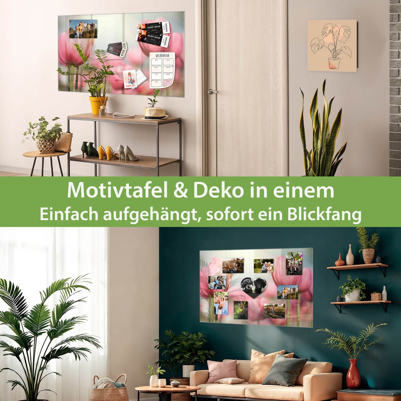 Die banjado Glas Magnettafel mit dem Motiv Motiv Tulpen verbindet Funktionalität mit Stil. Sie ersetzt das Zettelchaos durch klare Strukturen und bringt dabei eine warme, natürliche Atmosphäre in Ihr Zuhause. Ob im Büro, in der Küche oder im Eingangsbereich - dieses Design-Board zieht Blicke an und sorgt für Ordnung mit Charakter.