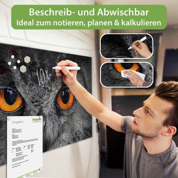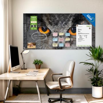 Die banjado Glas Magnettafel mit dem Motiv Motiv Uhu verbindet Funktionalität mit Stil. Sie ersetzt das Zettelchaos durch klare Strukturen und bringt dabei eine warme, natürliche Atmosphäre in Ihr Zuhause. Ob im Büro, in der Küche oder im Eingangsbereich - dieses Design-Board zieht Blicke an und sorgt für Ordnung mit Charakter.