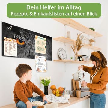 Auf der glatten Glasoberfläche lassen sich Termine, Rezepte oder Notizen ganz einfach mit Kreidestiften festhalten und rückstandslos entfernen. Starke Neodym-Magnete halten Ihre wichtigsten Erinnerungen sicher an Ort und Stelle. So entsteht Ihre ganz persönliche Ideenwand - jeden Tag neu.