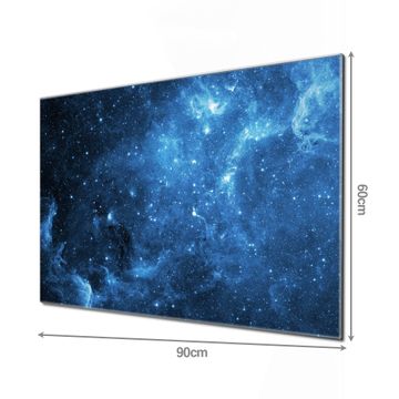 Material: 4mm Sicherheitsglas mit Metallrückwand Eigenschaften: beschreibbar, magnetisch, kratzfest Maße: 90x60x0,6cm, 8,10kg schwer Motiv Nummer 10437 Universum Zubehör: inklusive 4 Neodym-Magnete