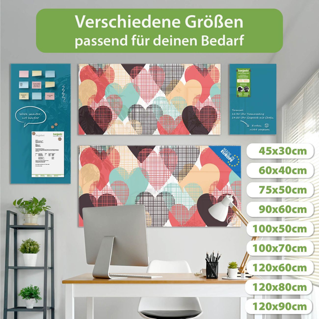 Material: 4mm Sicherheitsglas mit Metallrückwand Eigenschaften: beschreibbar, magnetisch, kratzfest Maße: 120x60x0,6cm, 10,80kg schwer Motiv Nummer 12160 Unter Herzen Zubehör: inklusive 4 Neodym-Magnete