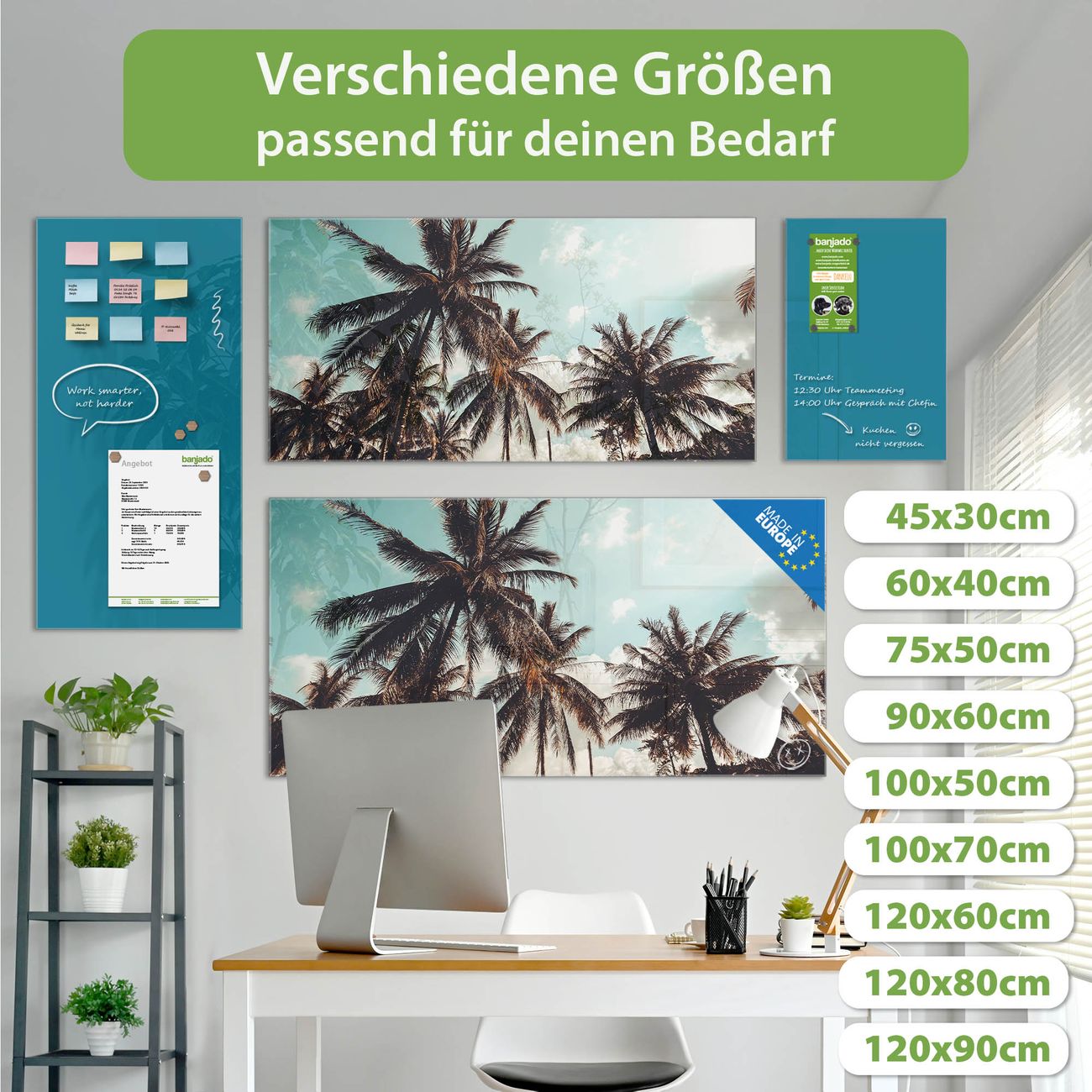 Jede Glas Magnettafel wird in unserer Werkstatt von Hand gefertigt und sorgfältig geprüft. So erhalten Sie ein echtes Qualitätsprodukt, das Funktion und Ästhetik perfekt vereint.?? Warum banjado?