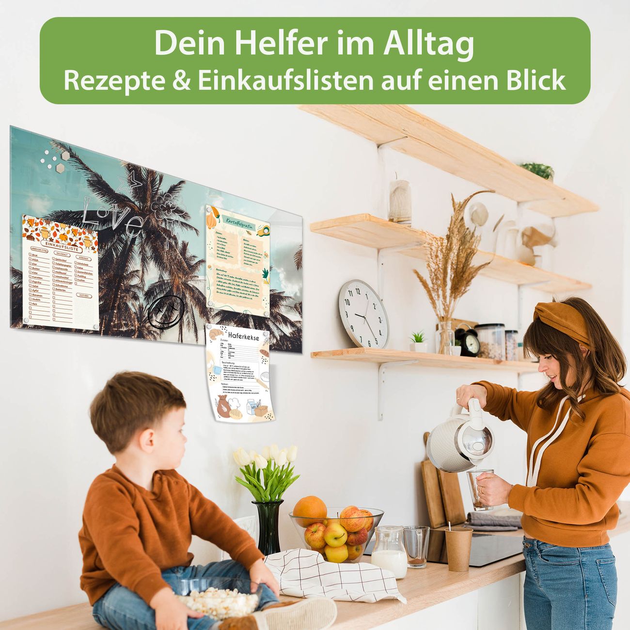 Auf der glatten Glasoberfläche lassen sich Termine, Rezepte oder Notizen ganz einfach mit Kreidestiften festhalten und rückstandslos entfernen. Starke Neodym-Magnete halten Ihre wichtigsten Erinnerungen sicher an Ort und Stelle. So entsteht Ihre ganz persönliche Ideenwand - jeden Tag neu.