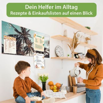 Die banjado Glas Magnettafel mit dem Motiv Motiv Unter Palmen verbindet Funktionalität mit Stil. Sie ersetzt das Zettelchaos durch klare Strukturen und bringt dabei eine warme, natürliche Atmosphäre in Ihr Zuhause. Ob im Büro, in der Küche oder im Eingangsbereich - dieses Design-Board zieht Blicke an und sorgt für Ordnung mit Charakter.
