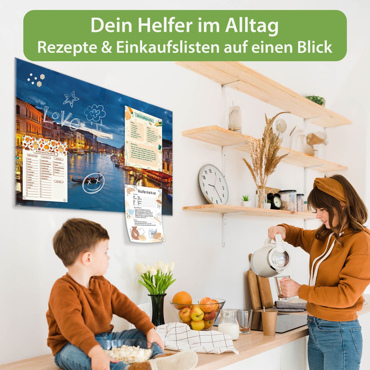 Ein Stück Design, das Ihren Alltag organisiert. Schreiben, heften, inspirieren - alles an einem Ort. Qualität, die man spürt. Montage leicht gemacht. Handwerk mit Herz - veredelt in Sachsen. Einzigartiges Design mit Motiv Motiv Canale Grande Bei Nacht Beschreibbare Glasoberfläche, leicht zu reinigen Starke Magnetkraft durch Stahlrückwand Inklusive 4 Neodym-Magneten Flexible Montageoptionen Handveredelt in Sachsen - Qualität, die bleibt