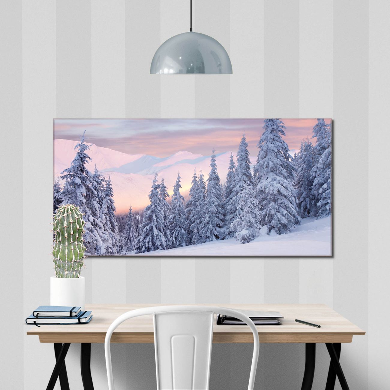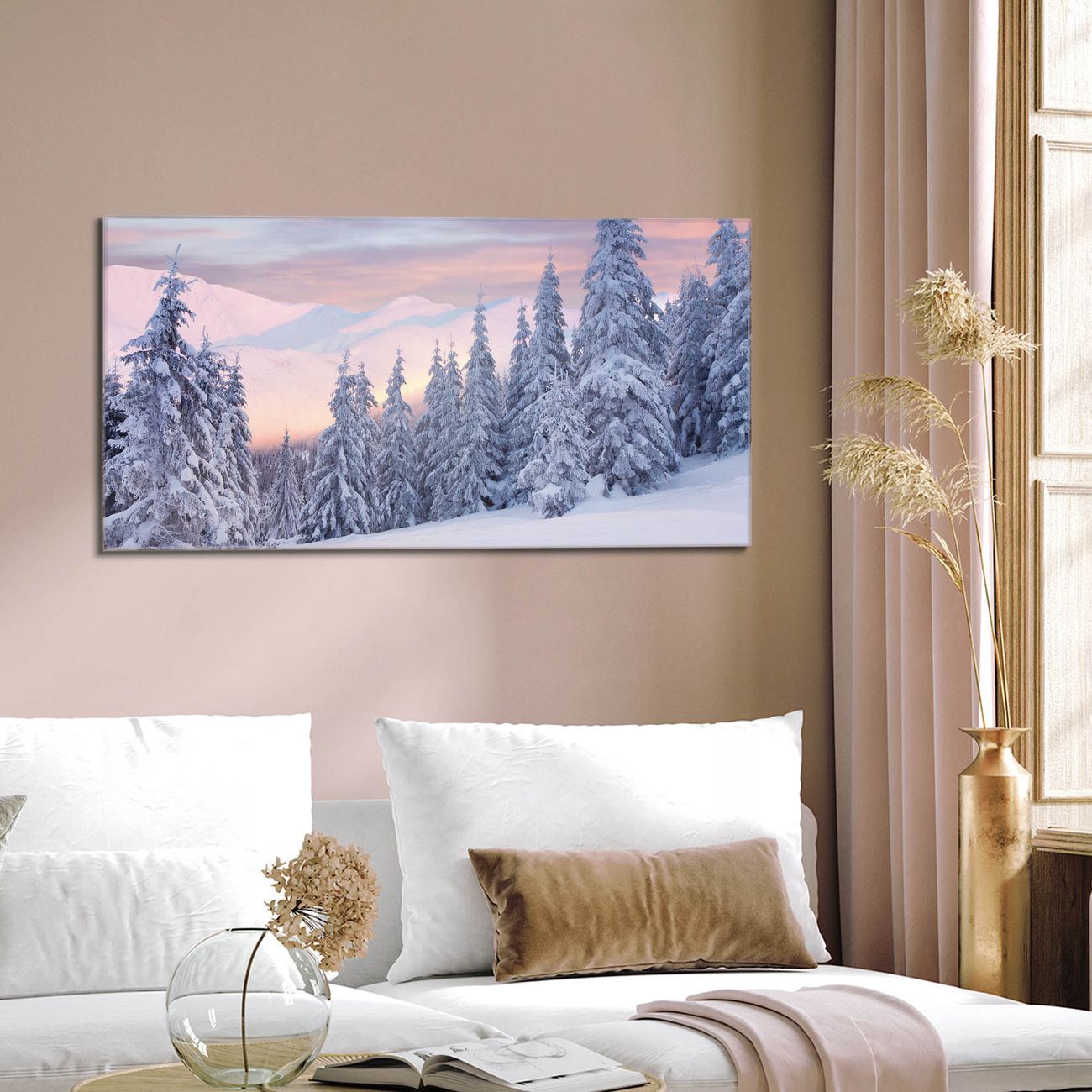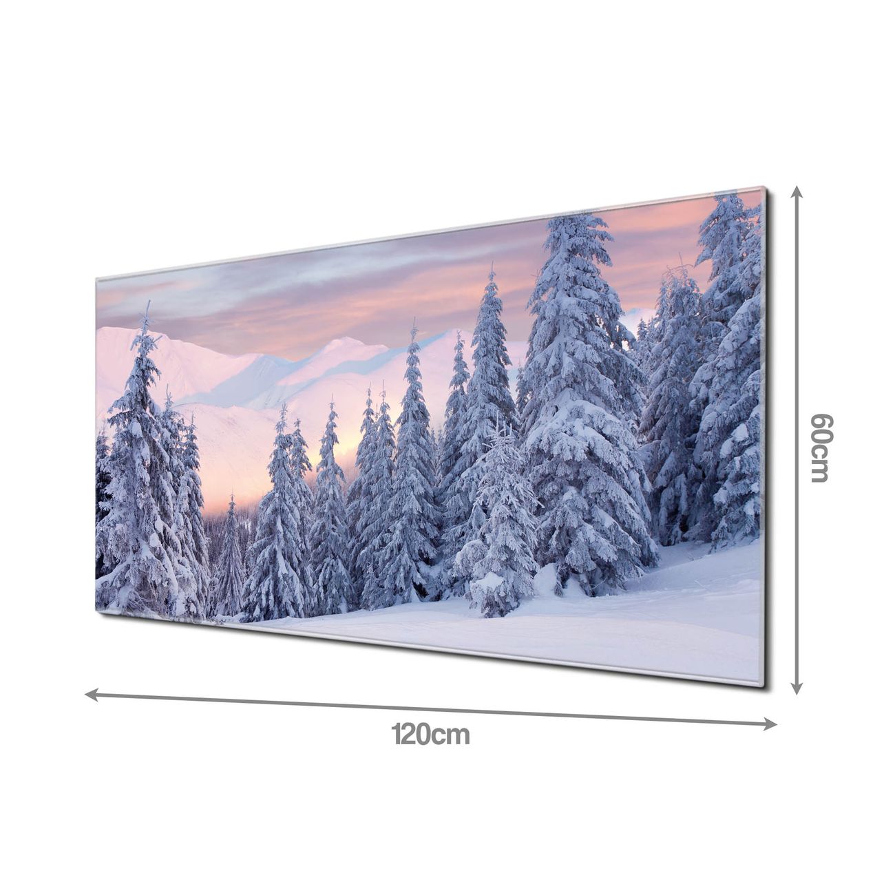 Material: 4mm Sicherheitsglas mit Metallrückwand Eigenschaften: beschreibbar, magnetisch, kratzfest Maße: 120x60x0,6cm, 10,80kg schwer Motiv Nummer 12336 Verschneite Berge Zubehör: inklusive 4 Neodym-Magnete