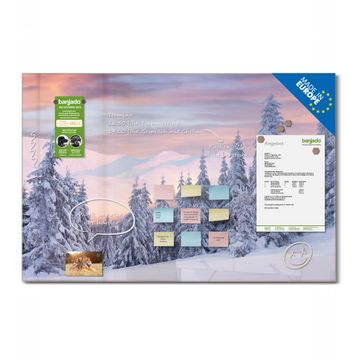 Material: 4mm Sicherheitsglas mit Metallrückwand Eigenschaften: beschreibbar, magnetisch, kratzfest Maße: 120x80x0,6cm, 14,40kg schwer Motiv Nummer 12336 Verschneite Berge Zubehör: inklusive 4 Neodym-Magnete