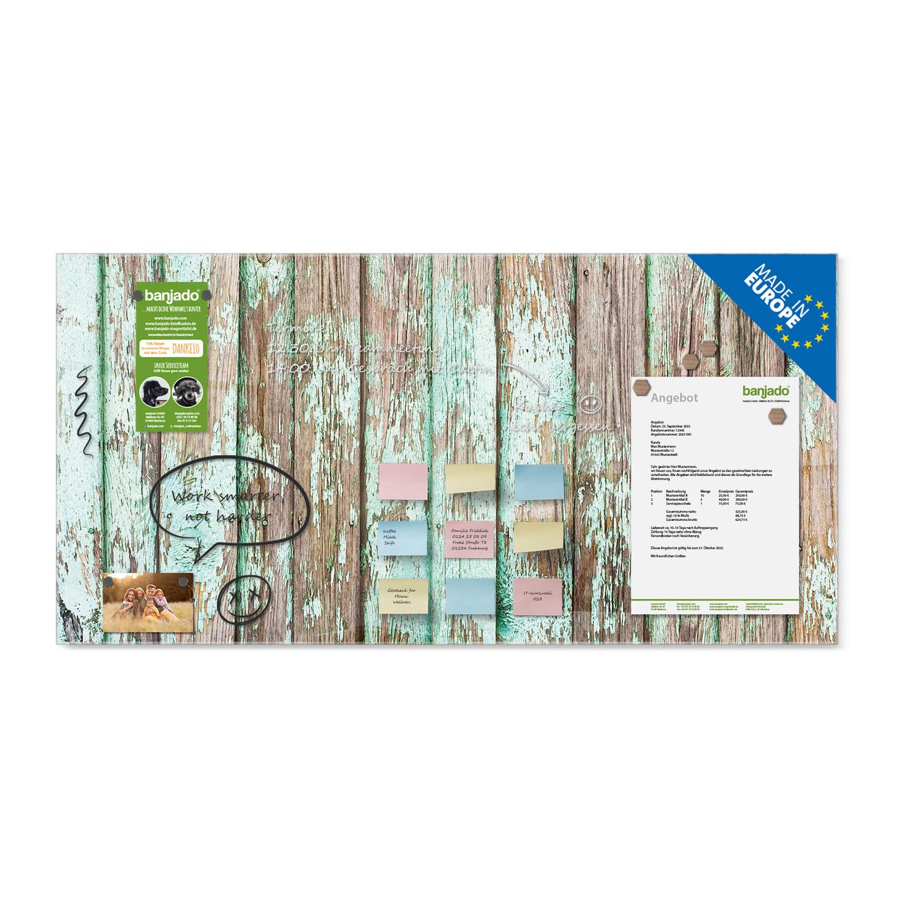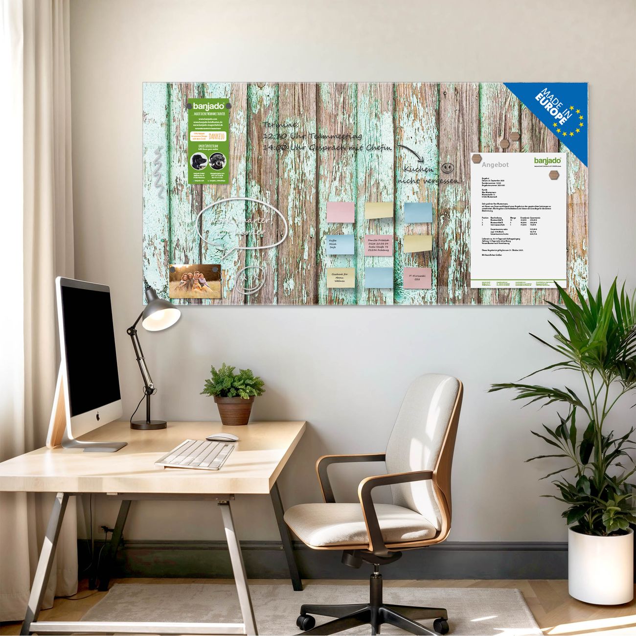 Die banjado Glas Magnettafel mit dem Motiv Motiv Verwittertes Holz verbindet Funktionalität mit Stil. Sie ersetzt das Zettelchaos durch klare Strukturen und bringt dabei eine warme, natürliche Atmosphäre in Ihr Zuhause. Ob im Büro, in der Küche oder im Eingangsbereich - dieses Design-Board zieht Blicke an und sorgt für Ordnung mit Charakter.