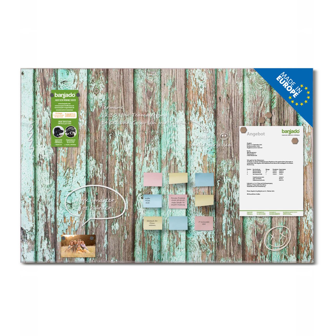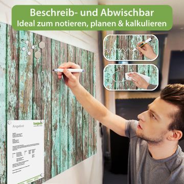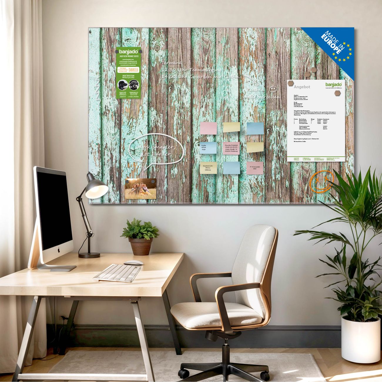 Die banjado Glas Magnettafel mit dem Motiv Motiv Verwittertes Holz verbindet Funktionalität mit Stil. Sie ersetzt das Zettelchaos durch klare Strukturen und bringt dabei eine warme, natürliche Atmosphäre in Ihr Zuhause. Ob im Büro, in der Küche oder im Eingangsbereich - dieses Design-Board zieht Blicke an und sorgt für Ordnung mit Charakter.