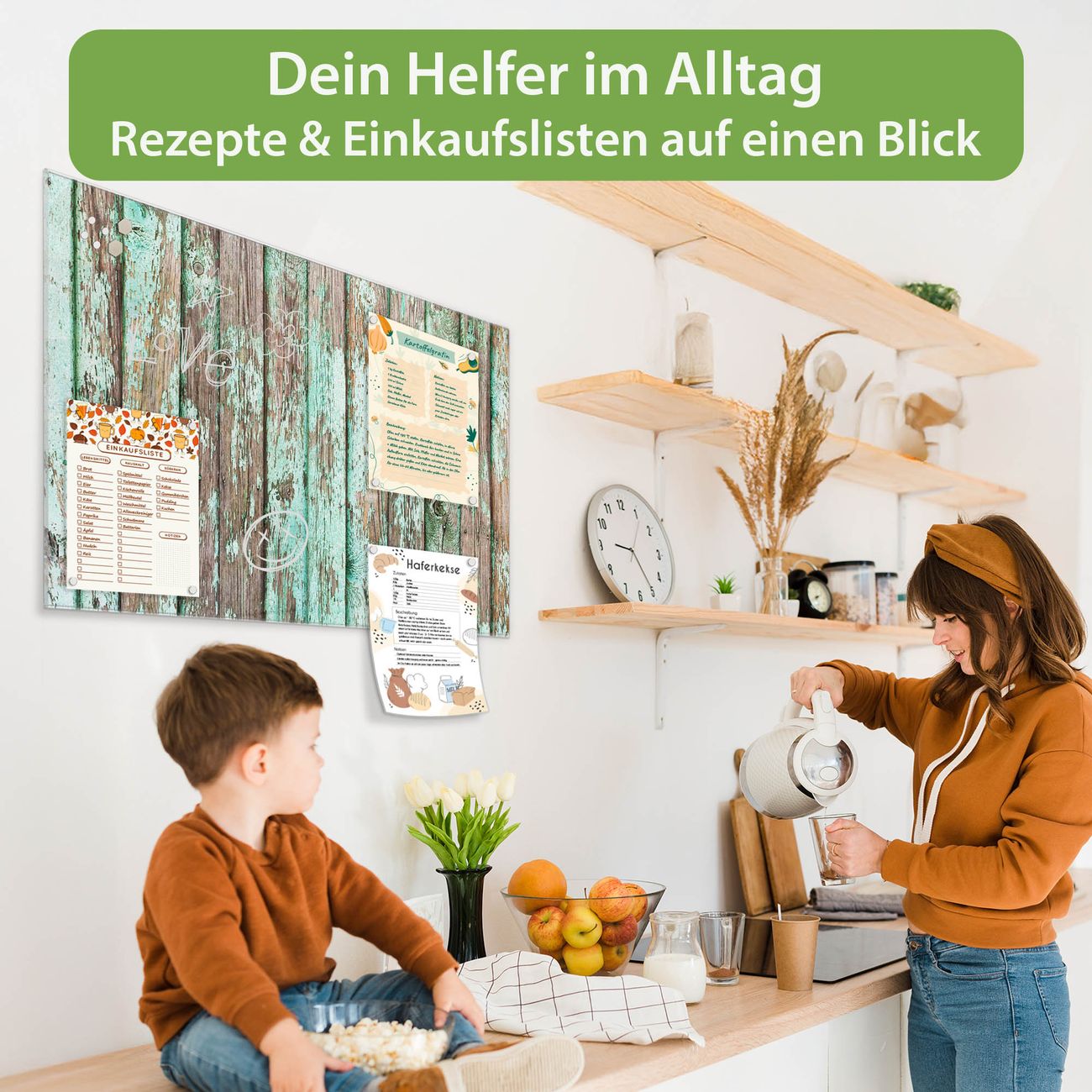 Ein Stück Design, das Ihren Alltag organisiert. Schreiben, heften, inspirieren - alles an einem Ort. Qualität, die man spürt. Montage leicht gemacht. Handwerk mit Herz - veredelt in Sachsen. Einzigartiges Design mit Motiv Motiv Verwittertes Holz Beschreibbare Glasoberfläche, leicht zu reinigen Starke Magnetkraft durch Stahlrückwand Inklusive 4 Neodym-Magneten Flexible Montageoptionen Handveredelt in Sachsen - Qualität, die bleibt