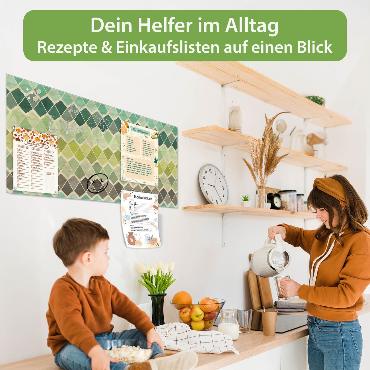 Ein Stück Design, das Ihren Alltag organisiert. Schreiben, heften, inspirieren - alles an einem Ort. Qualität, die man spürt. Montage leicht gemacht. Handwerk mit Herz - veredelt in Sachsen. Einzigartiges Design mit Motiv Motiv Vier Farben Grün Beschreibbare Glasoberfläche, leicht zu reinigen Starke Magnetkraft durch Stahlrückwand Inklusive 4 Neodym-Magneten Flexible Montageoptionen Handveredelt in Sachsen - Qualität, die bleibt