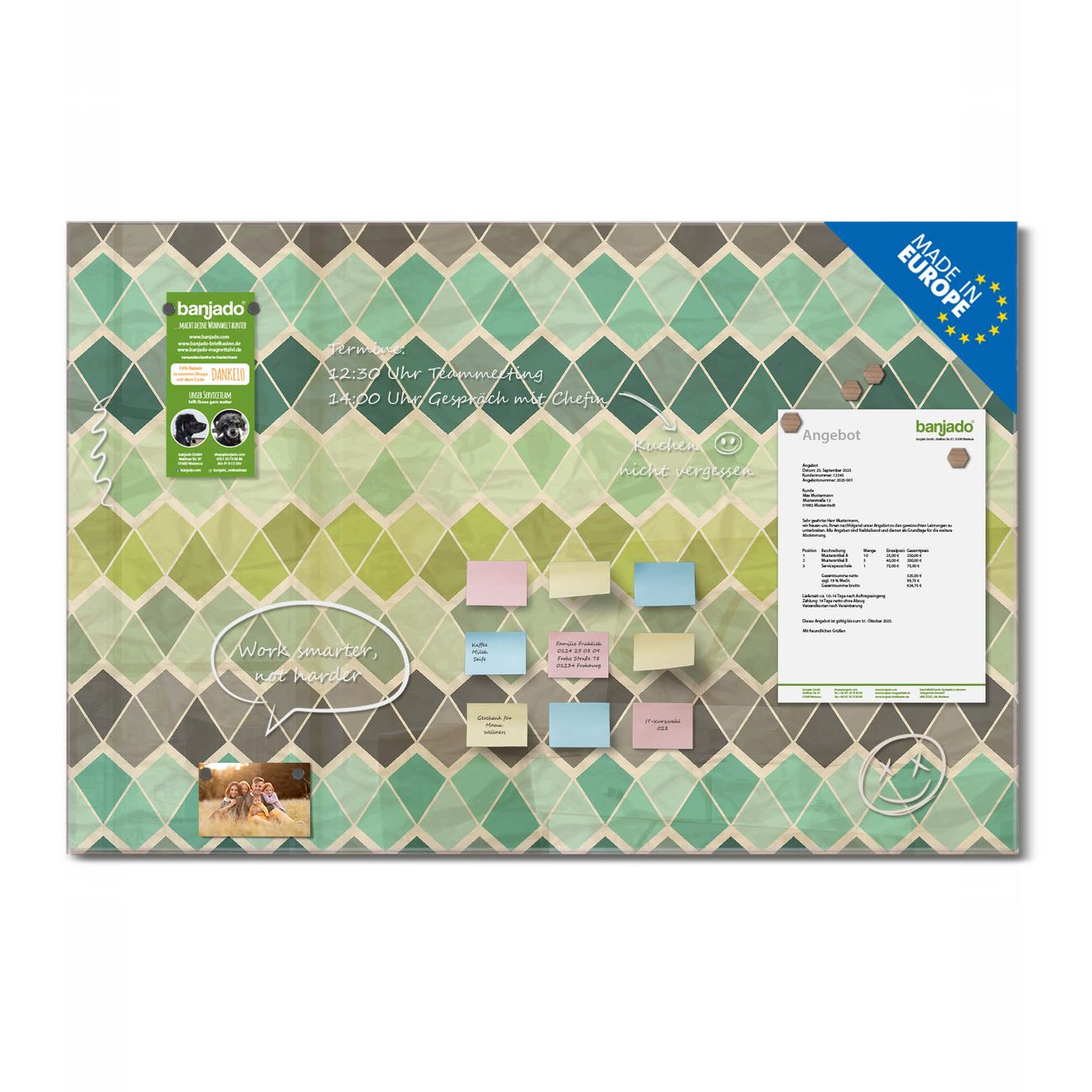Die banjado Glas Magnettafel mit dem Motiv Motiv Vier Farben Grün verbindet Funktionalität mit Stil. Sie ersetzt das Zettelchaos durch klare Strukturen und bringt dabei eine warme, natürliche Atmosphäre in Ihr Zuhause. Ob im Büro, in der Küche oder im Eingangsbereich - dieses Design-Board zieht Blicke an und sorgt für Ordnung mit Charakter.